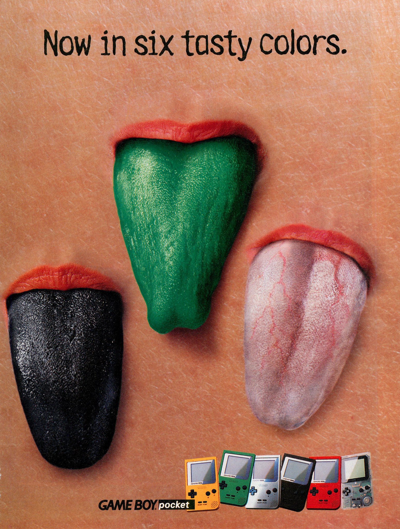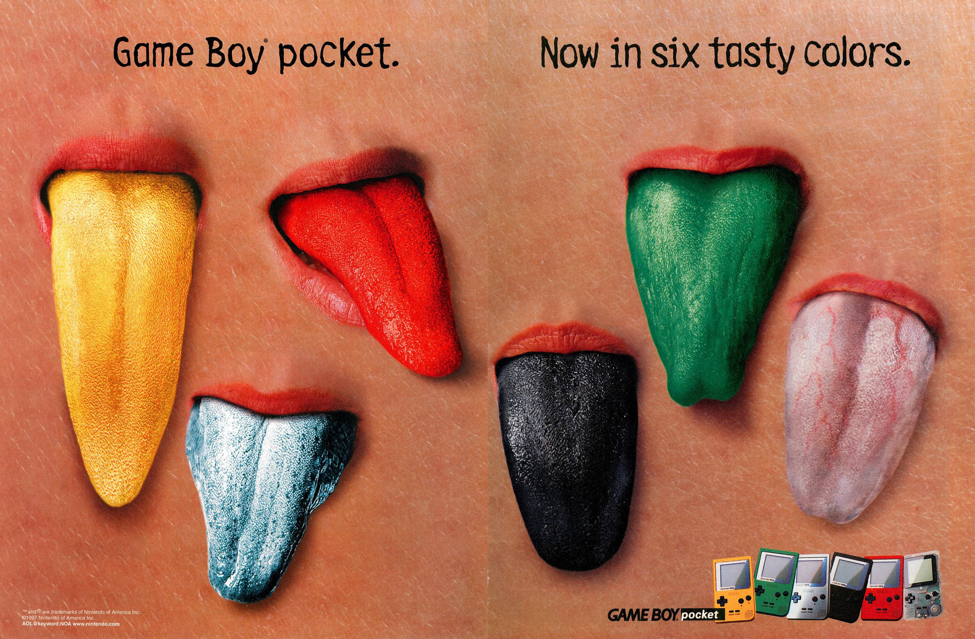 Game Boy Pocket – “Six Tasty Colors” two-page ad (1997)