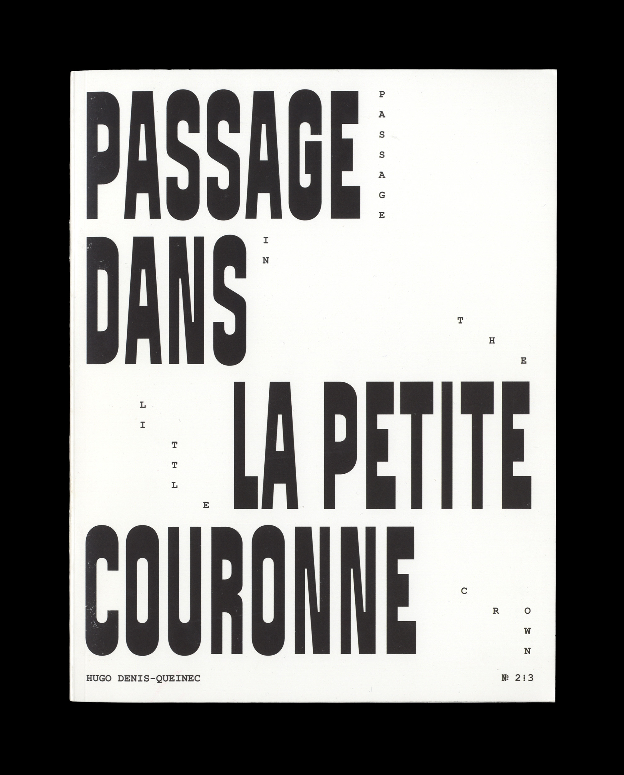 For the cover of the zine, the graphic designers chose to set the title with Signal Compressed from Production Type, accompanied by small type in Courier. The book deals with the idea of territory, so using a typeface inspired by the French highway signage is relevant, furthermore when we know that living in the suburbs often implies having a car. On the other hand – in French as well as in English – the word “passage” means going through something, or a tight way: the compressed style of Signal evokes this idea of a narrow path followed into this area.