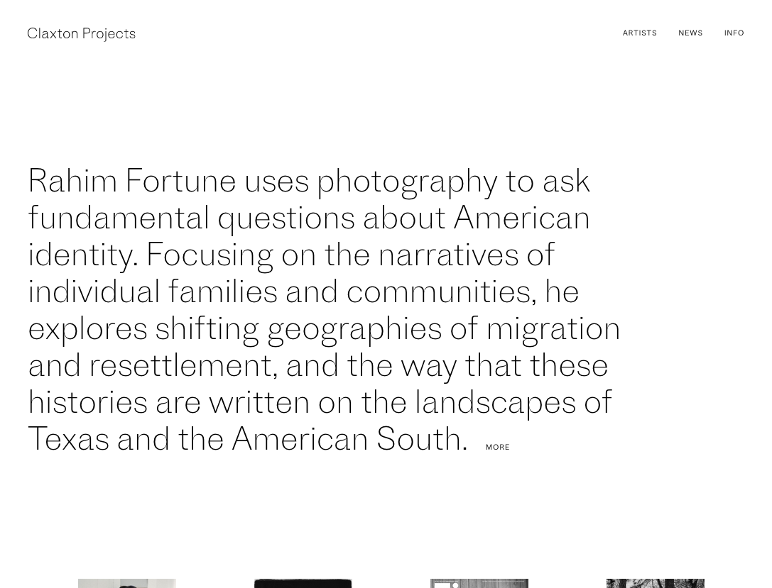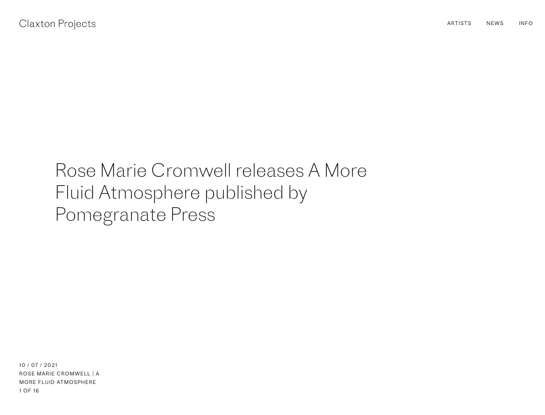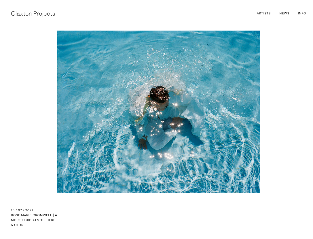 The design studio from San Francisco came up with a well-considered and lightweight approach. The only elements shown in addition to the photographic works are a logo-like symbol that hints at the C in Claxton as well as the shape of a lens, and a single typeface. The chosen typeface is Proto Grotesk by Production Type. It’s conventional and soft-spoken enough not to steal the show from the images. At the same time, it has plenty of character. With its strongly modulated joins, the elaborate double-story g and the edgy flat terminals in a, f or y, Proto Grotesk can lend an intriguing look to each line of text.