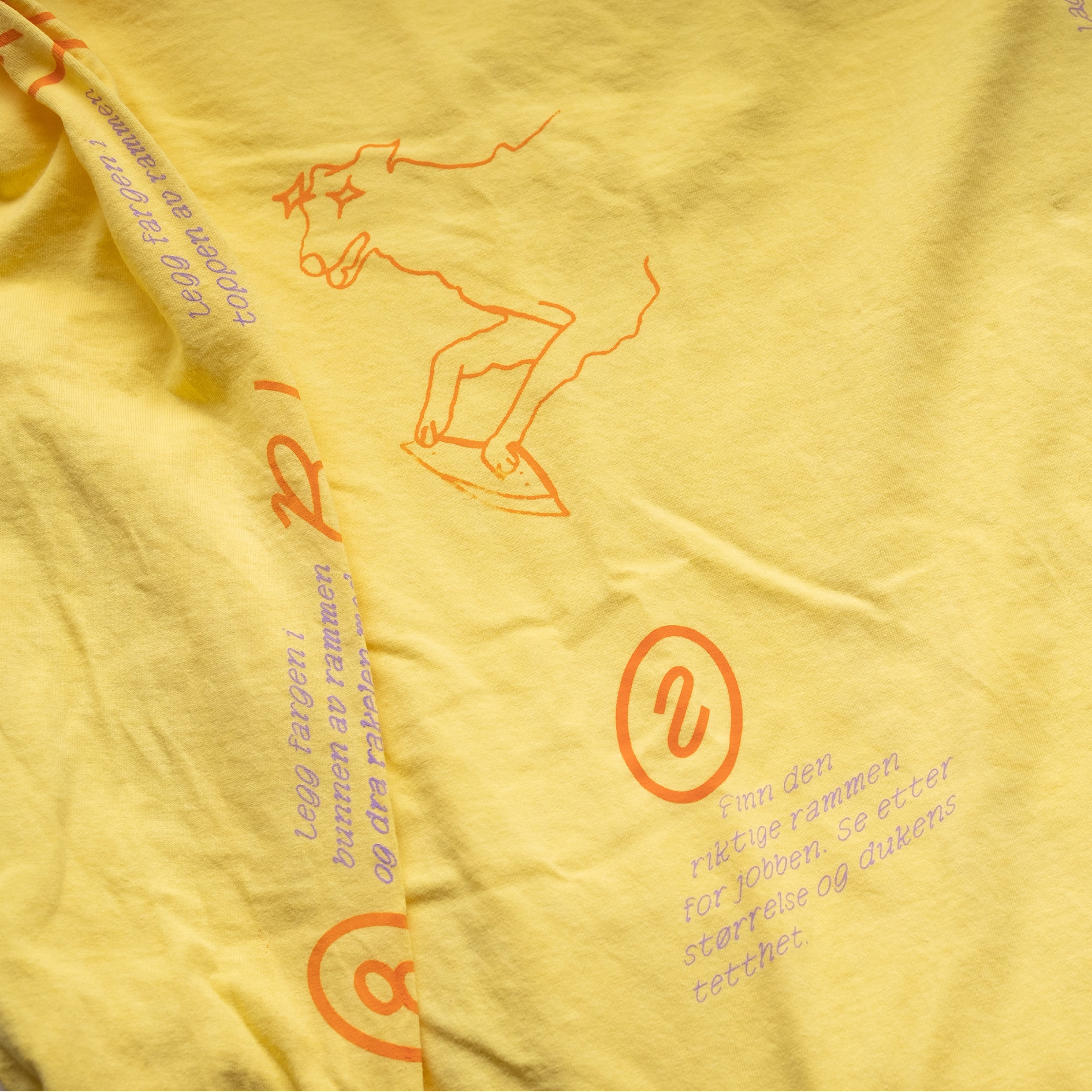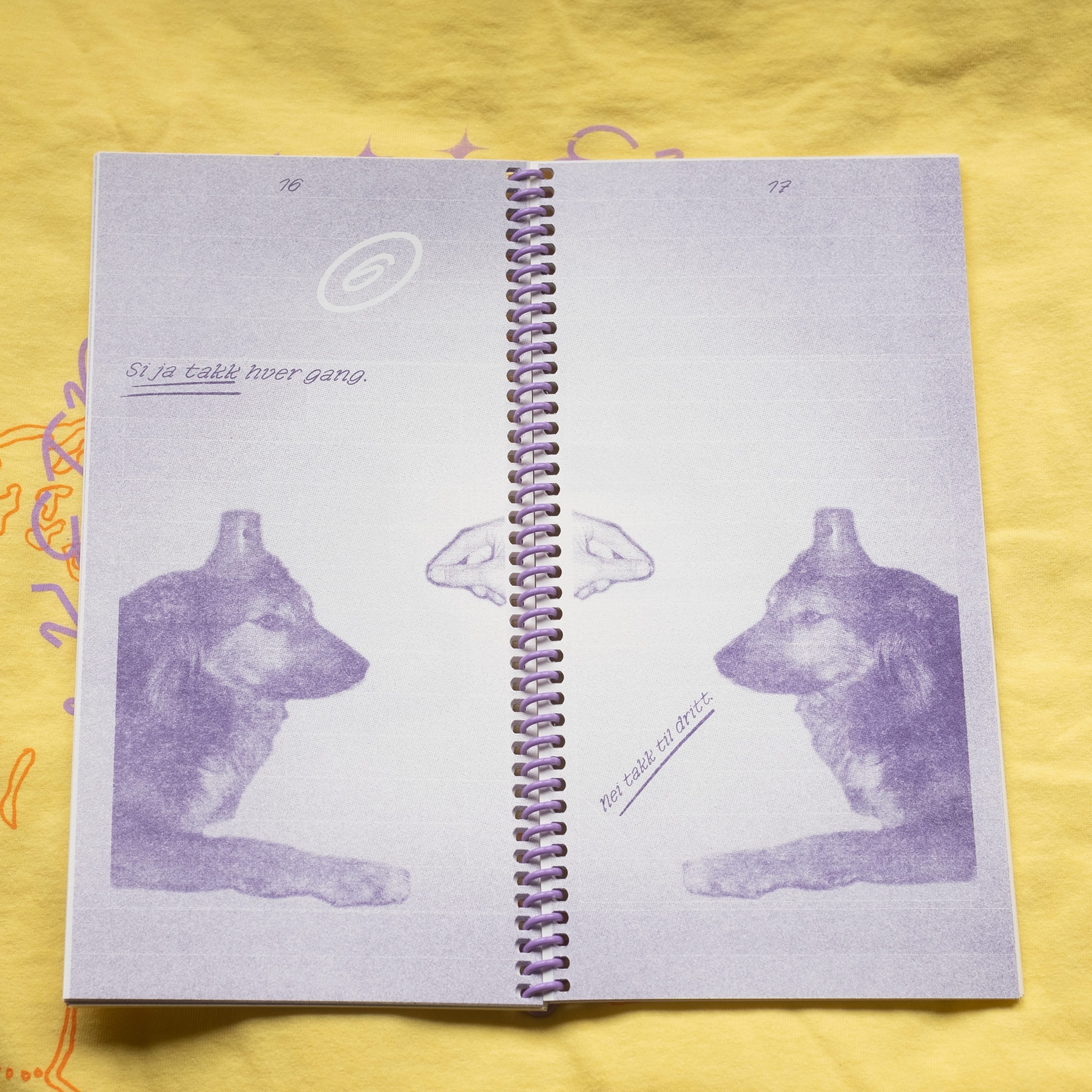 I have used it for the publication and a long sleeve, which is also a part of my MA project. Flokkens Trykkeri is a project about the screen print workshop and how to give an alternative user manual for its use. I’m also trying to give a different perspective of who the printer is. The dogs are used as guides and symbols of kindness, empathy and humor.