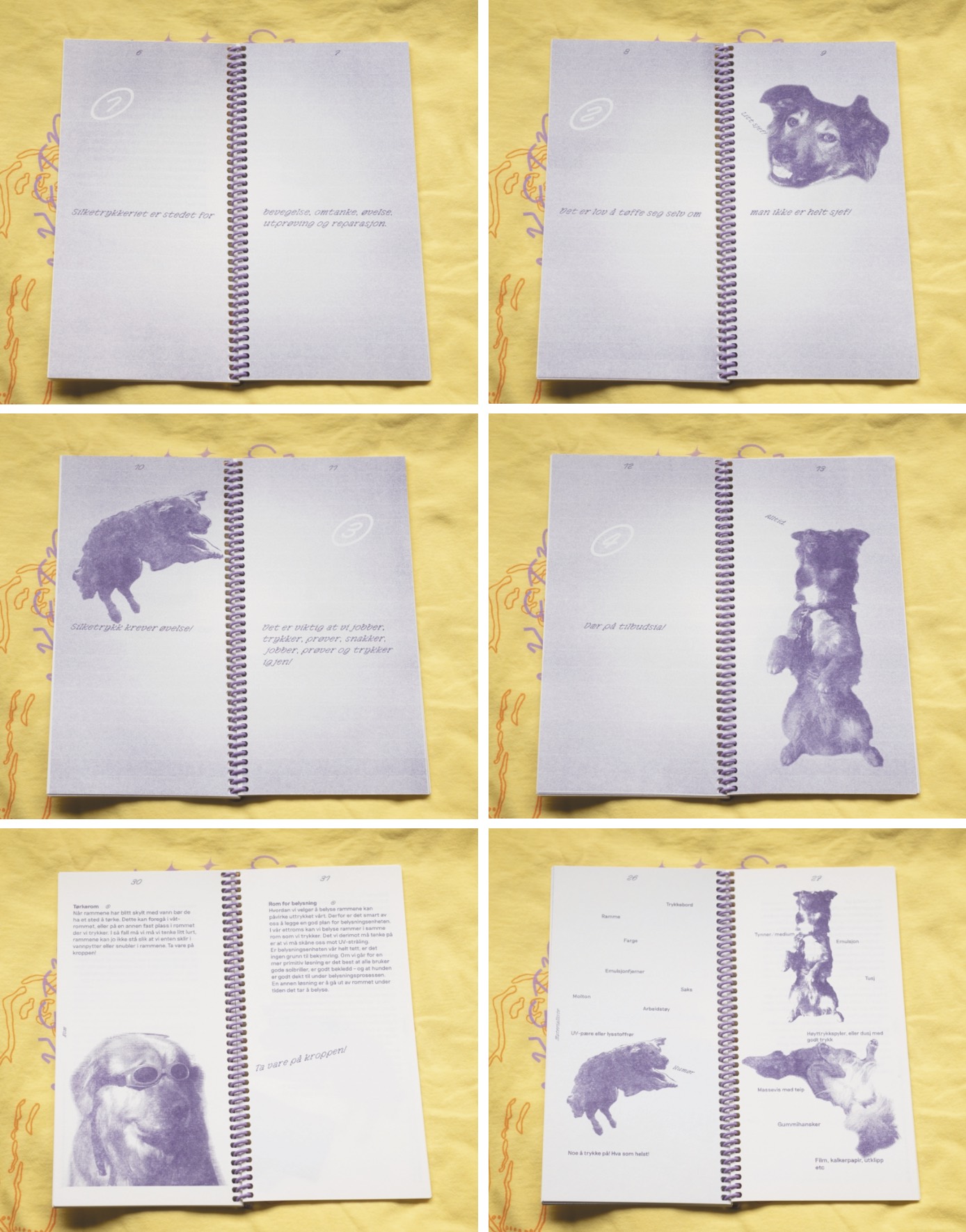 As her MA graduation project for the Kunsthøgskolen i Oslo (KHiO), Oslo-based designer Tonje Lona Eriksen designed a colorful collection of educational instruction guides illustrating screen printing by using dogs along G2 Ciao. She writes: