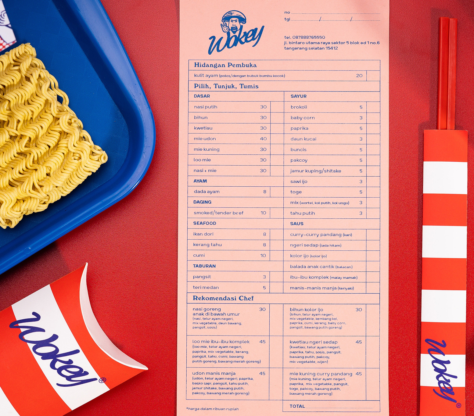 Wokey is a fun and entertaining eatery serving fresh ingredients, stir fried express on the spot using wok technique. Through its branding, Wokey tries to evoke this familiar feeling by modernizing the ubiquitous, utilitarian everyday ephemera often found in those humble places.