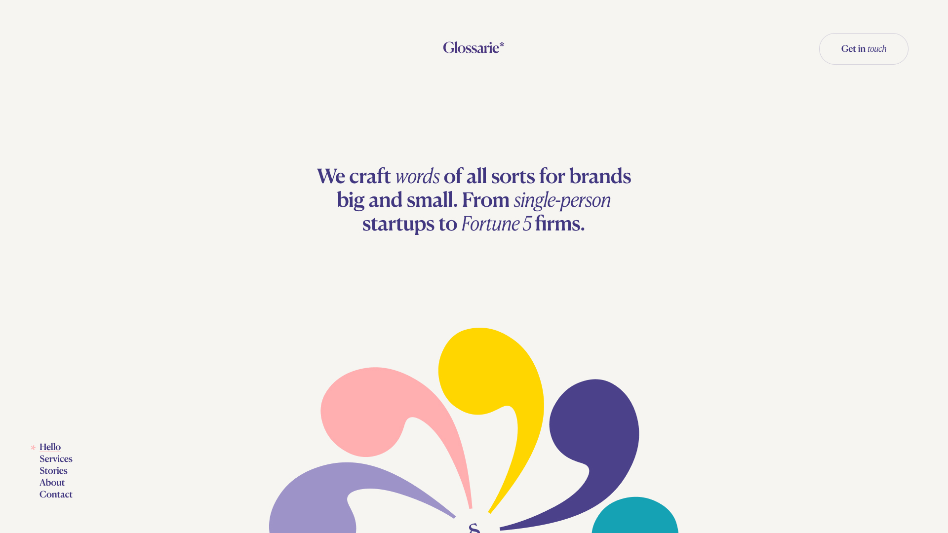 Glossarie is a colourful web experience for Elizabeth Befus, former editor in chief at Apple — writer about all things tech. Her obsession with colours, words, numbers and symbols as well as her vibrant personality were used as inspiration for this playful one-pager.