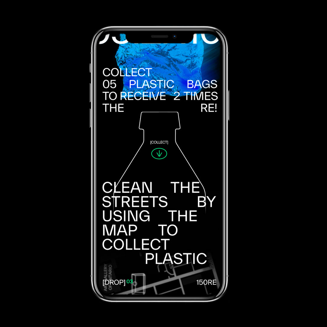 RE is an augmented reality scavenger activation established to change the narrative of plastic consumption and disposal and evoke a new future for our planet. This project breaks away from the traditional doom and gloom message around plastics. Instead, RE uses a visual language that makes plastics fun to talk about, rewarding to participate in and intriguing to learn about.