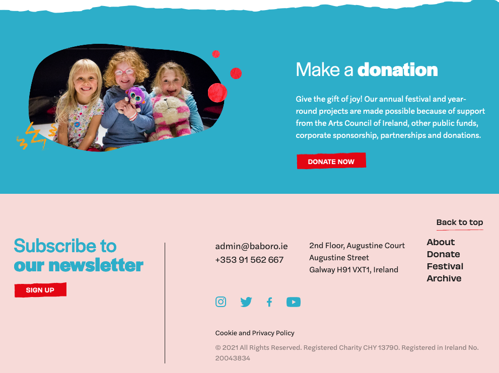 Dublin-based studio Path provided the website design for the 25th festival. They skillfully combined several sans-serif fonts: Halyard Display by Darden Studio is used in Regular and Bold weights, lending its impact to headlines, large quotes, and CTAs. All smaller copy is rendered in Halyard Text: with more open interletter spacing and larger apertures than its Display sibling, this subfamily is optimized for text sizes. The palette is completed by OH no’s Obviously Medium: this wider and vertically more compact font serves for the menu, button labels, and other navigational items.