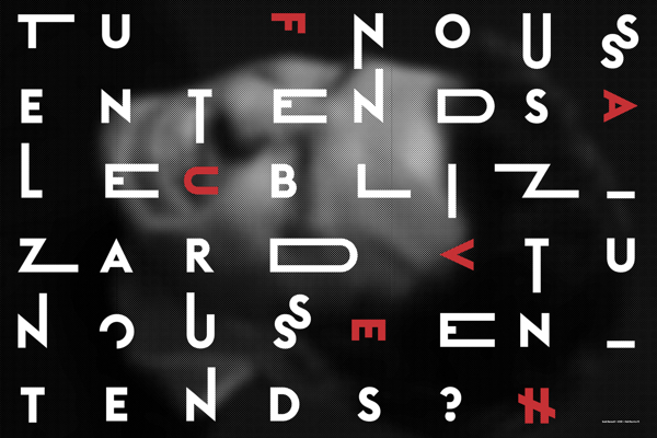 Nuit Fauve n°5 Contributed by Scott Renau on Jul 1st, 2013. Artwork published in 2013. Source: www.behance.net Scott Renau. License: CC BY-NC-ND. << Tu nous entends le blizzard ? tu nous entends ? >> Poster for the fifth concert of the French band FAUVE @ the Flèche D’or in Paris. (80×120cm) Source: www.behance.net Scott Renau. License: CC BY-NC-ND. Source: www.behance.net Scott Renau. License: CC BY-NC-ND. Source: www.behance.net Scott Renau. License: CC BY-NC-ND. Typefaces More about Euclid FlexGet Euclid Flex Formats Posters/Flyers (5869) Topics Event (3286) Music (6439) Designers/Agencies Scott Renau (2) Tagged withFauve (1)ESAG (2)Pennighen (1)concerts (121)concert & gig posters (523)modified typeface (1771)trendlisty (118)hyper-extended glyphs (342)scattered type (101) Artwork location France (2903) Paris (1356) In SetsHammer (Florian Mörk) (73) Post a comment Name Email – will not be published Website Your response Submit Comment More Euclid Flex in use Suisse Rugby FSRc. 2016Yona LeeContributed by Swiss Typefaces Talking about Swiss2015unknownContributed by Swiss Typefaces Mmabatho Namsa Leubac. 2016Michaël TeixeiraContributed by Swiss Typefaces Sponsor More in Event The School of Life special events posterc. 2015Tako ChabukianiPragmatikaContributed by Tako Chabukiani Staff Pick Barrio (Bairro) Berlin2024Carolina GiovagnoliContributed by Huerta Tipográfica Staff Pick Deb & Jules wedding invitation2012The Hungry WorkshopContributed by Stephen Coles My Neighbour K: The Peculiar Garden2022Handiii KimDahseul JungContributed by Jérémy Landes (Studio Triple) Staff Pick More in Posters/Flyers Marc Maron Live at Carnegie Hall2016Derek GabryszakContributed by George Triantafyllakos CinemAfrica film festival2019Spektra DesignMartin LiljesandContributed by Gareth Hague f-a-t.czc. 2020Matyáš BartoňMichaela RežováContributed by Briefcase Type Foundry Künstlerinnen in Expressionismus und Fluxus – Tell these people who I am2024SichtvermerkContributed by Giulia Boggio More Fonts In Use Taxi Driver poster for Alamo Drafthouse2013Martin AnsinContributed by Stephen Coles Staff Pick 2018 Moons calendar2017Kevin SullivanMasha DavydovaContributed by Kevin Sullivan Staff Pick Basel Kunstverein Kunsthalle annual report 20182018Anton StuckardtBarbara Acevedo StrangeContributed by Massimiliano Audretsch Staff Pick Sonhos ao Sol: Miragens da Arte na América Latina2024Felipe ChodinCamila RegueiraContributed by NaN Staff Pick