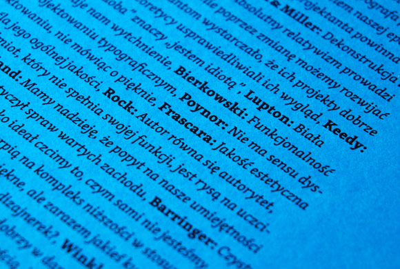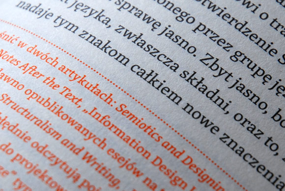 Polish publishing house Karakter recently published a book titled Widzieć/Wiedzieć (“to see/to know”), an anthology of the most important texts about design edited by Przemek Dębowski and Jacek Mrowczyk. Fundamental essays from almost forty authors have been translated to Polish, some of them for the first time. The hardbound book has 464 pages and contains texts of El Lissitzky, Jan Tschichold, Beatrice Warde, Paul Rand, Gerard Unger, Paul Stiff, and many others that debate and question contemporary typography and graphic design. The body text is nicely typeset with Skolar. Mark us proud.