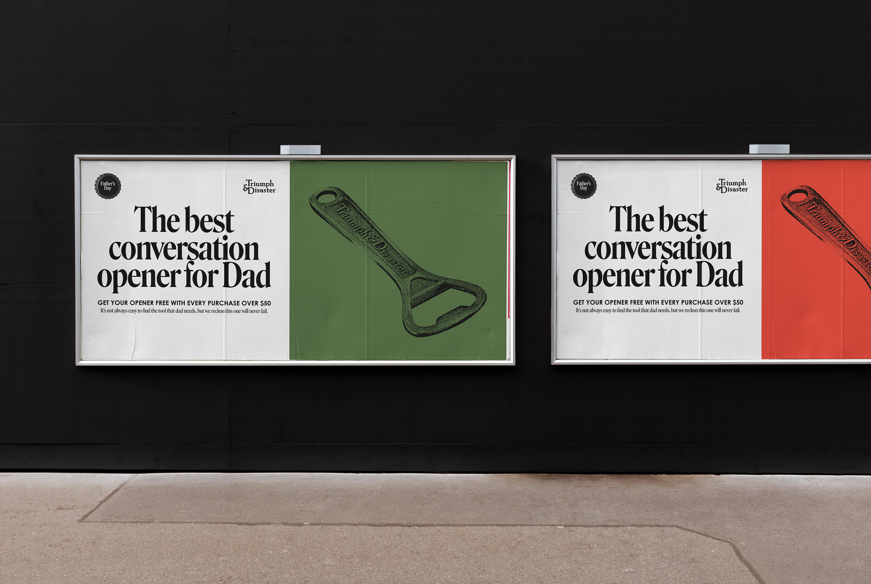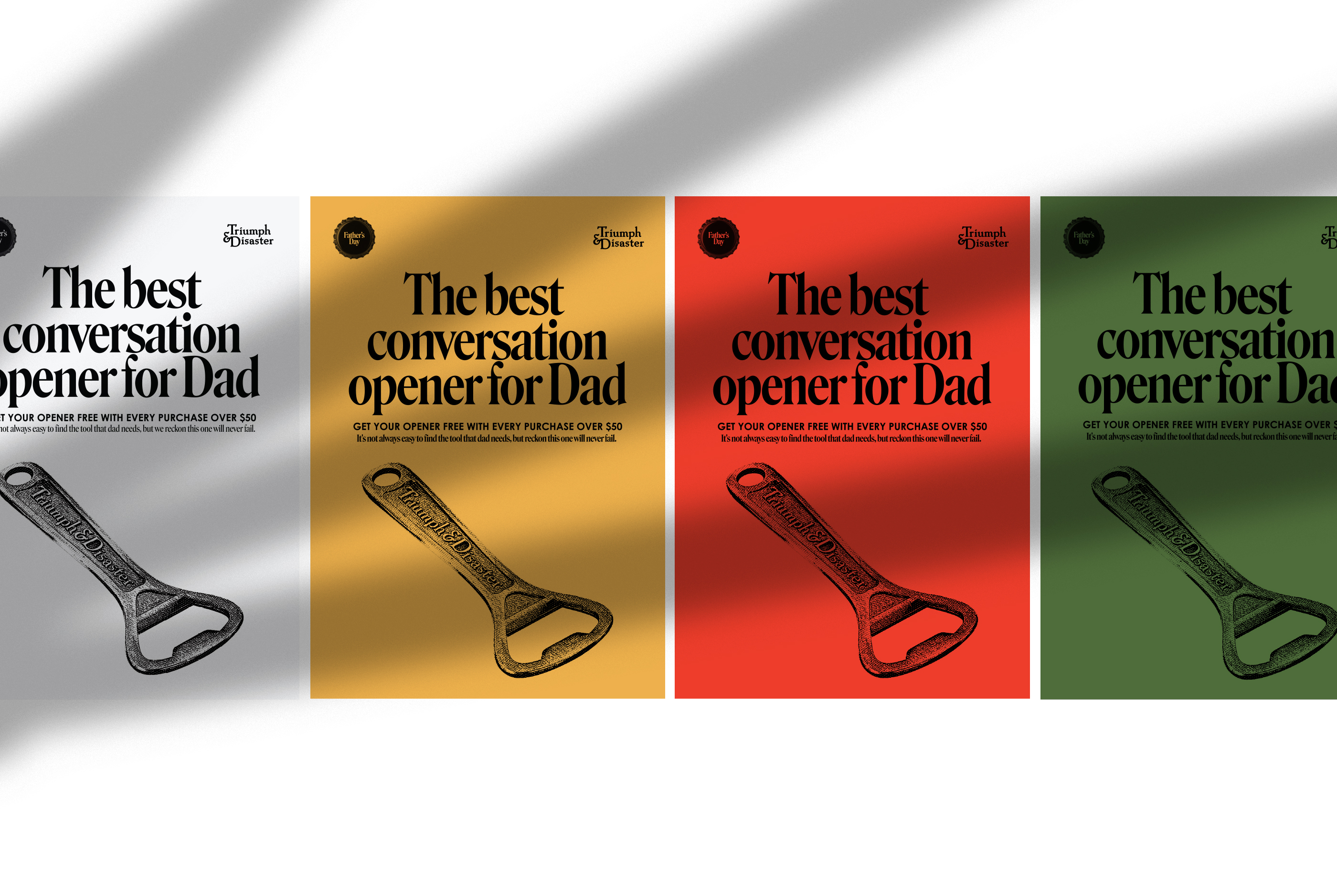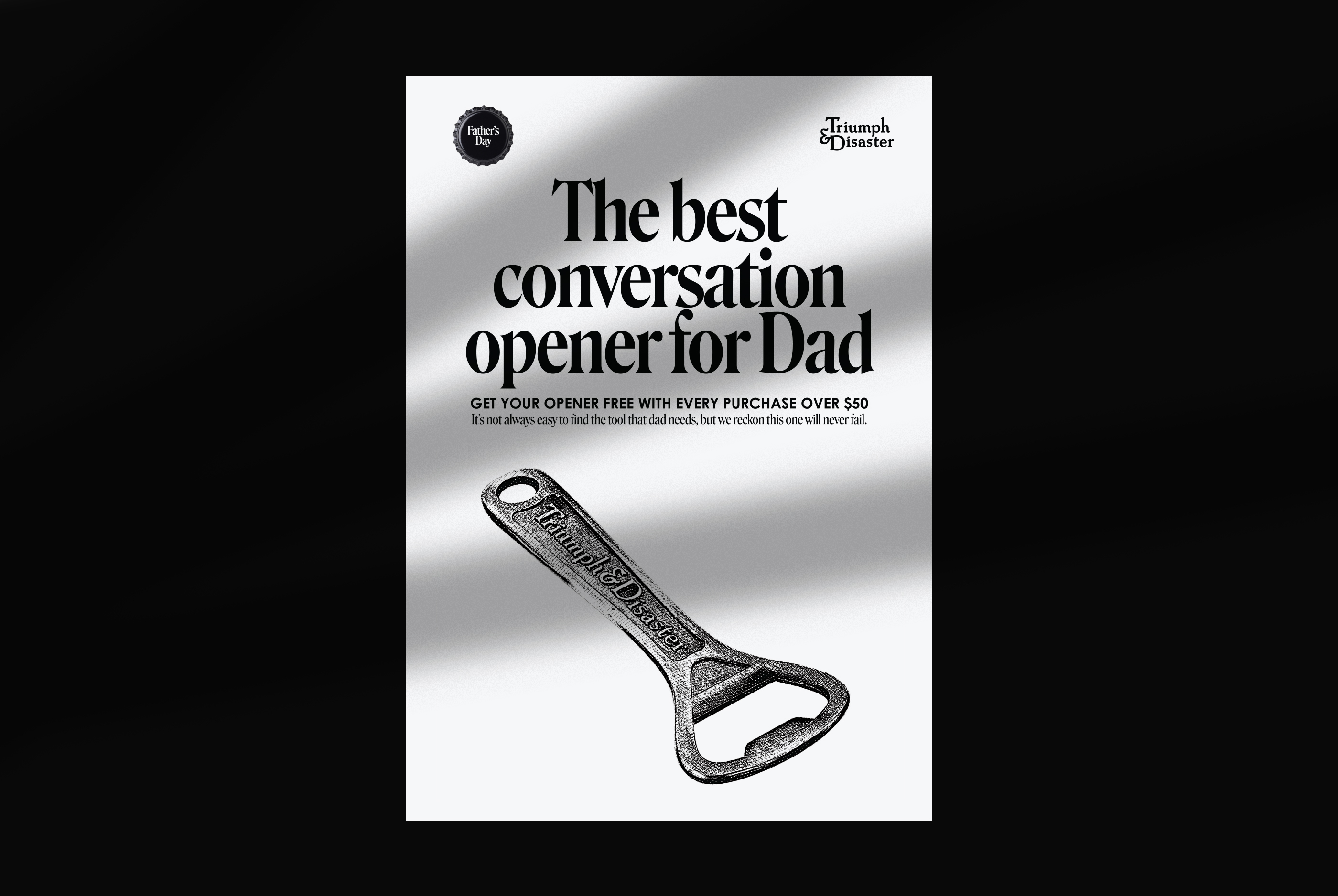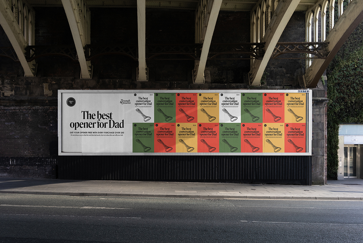 Concept and design for the Father’s Day campaign by Triumph & Disaster, where a bottle opener is the gift with purchase (GWP).