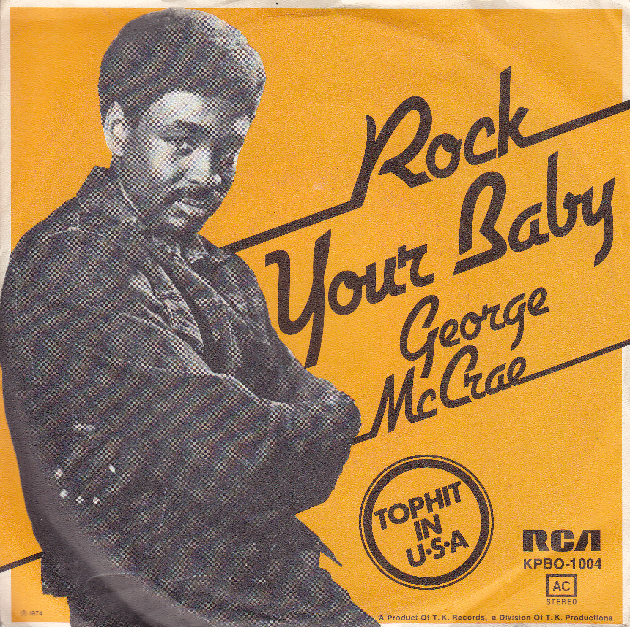 Gillies Gothic set on an angle, with hyper-extended glyphs, for the German sleeve for “Rock Your Baby”. Released in summer 1974 as the debut single by George McCrae (b. 1944), it became a massive international hit – and one of the first hits of the disco era, selling 11 million physical copies worldwide. “Tophit in U·S·A” is set in caps from Futura Bold Italic.