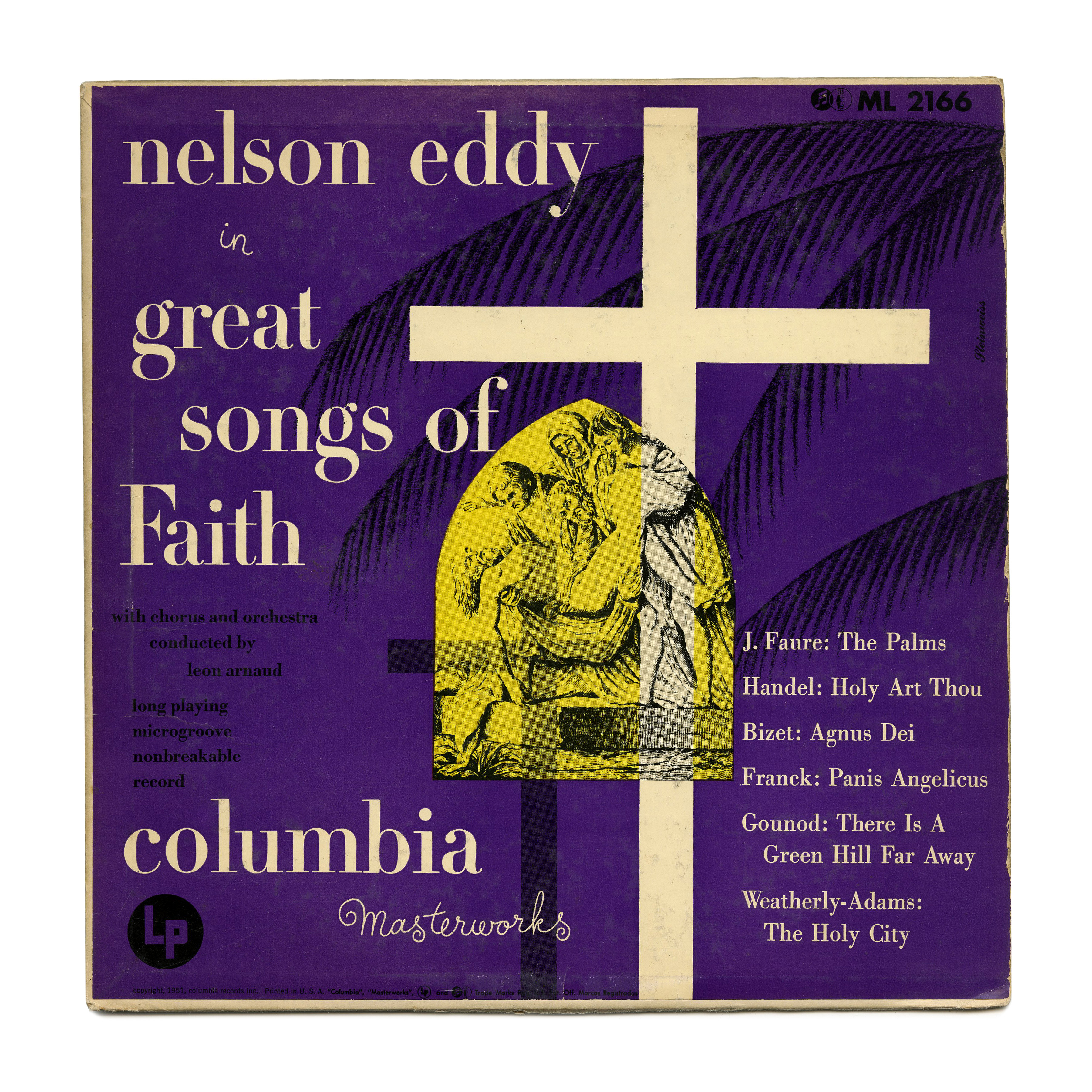 Great Songs of Faith was recorded by Nelson Eddy (1901–1967) with chorus and orchestra conducted by Leon Arnaud (1904–1991), and released by Columbia Masterworks in 1951. According to Wikipedia, Eddy –