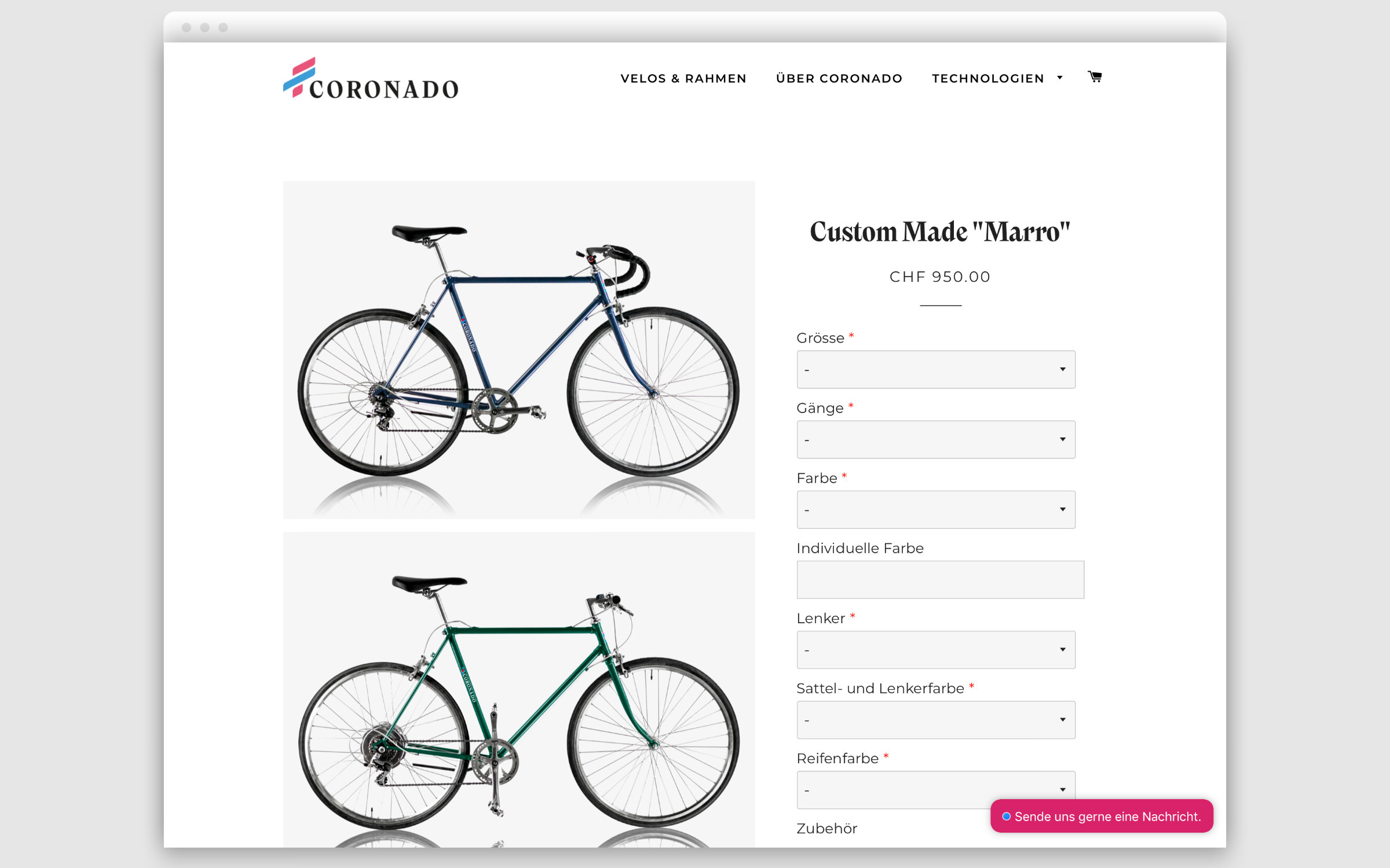 This realization gave rise to the idea of reviving the Swiss bicycle industry and manufacturing high-quality, locally produced city bikes of their own. So, together they founded Wheels & Cycles and acquired the rights to the name of the successful 1980s brand, Coronado. Following discussions with various Swiss manufacturers and distributors, in January 2021, they launched the Coronado shop for custom city bikes.