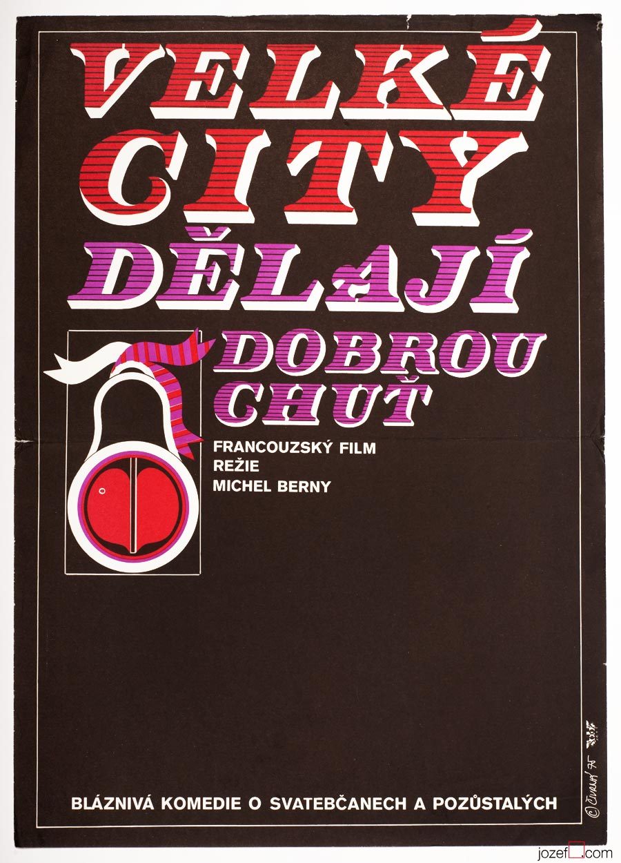 Czechoslovak poster for Les grands sentiments font les bons gueuletons (English: Big Sentiments Make for Good Sports), “a crazy comedy about wedding guests and survivors”, directed by Michel Berny and starring Michel Bouquet, Jean Carmet, and Michael Lonsdale.