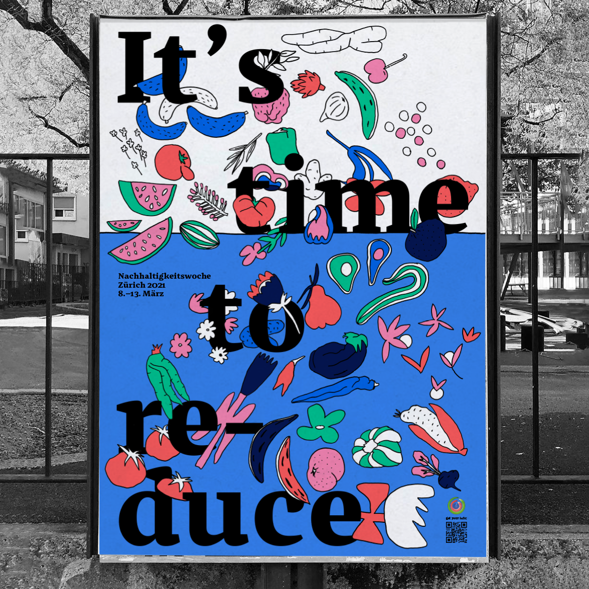 It’s time to… poster series by Eleonora Bonorva for the Zurich Sustainability Week, an event series organized at the local universities ETH, UZH, PHZH, ZHdK, and ZHAW. More information can be found on the website together with lots of tips on how to reduce waste! JanusBold is used throughout.