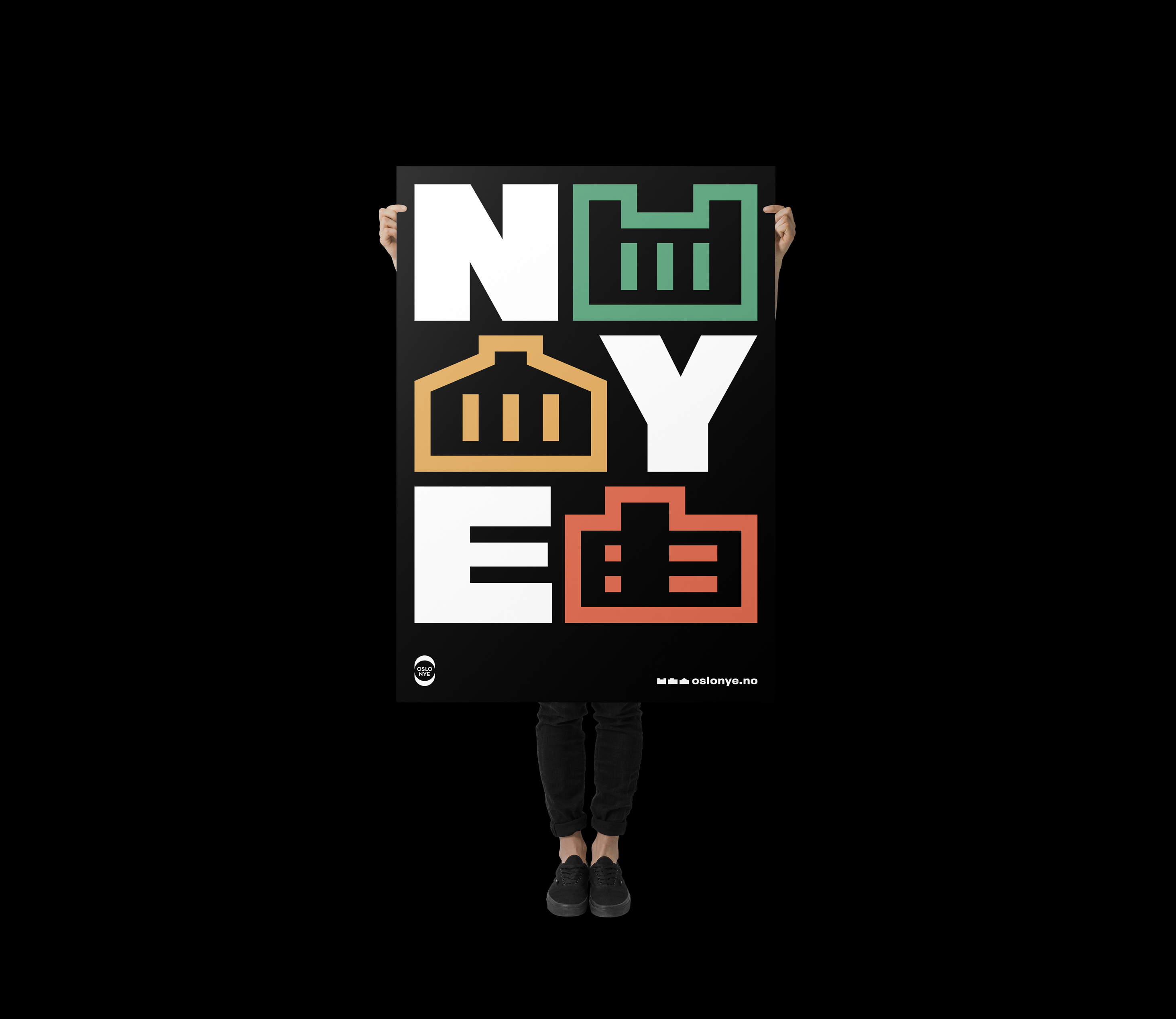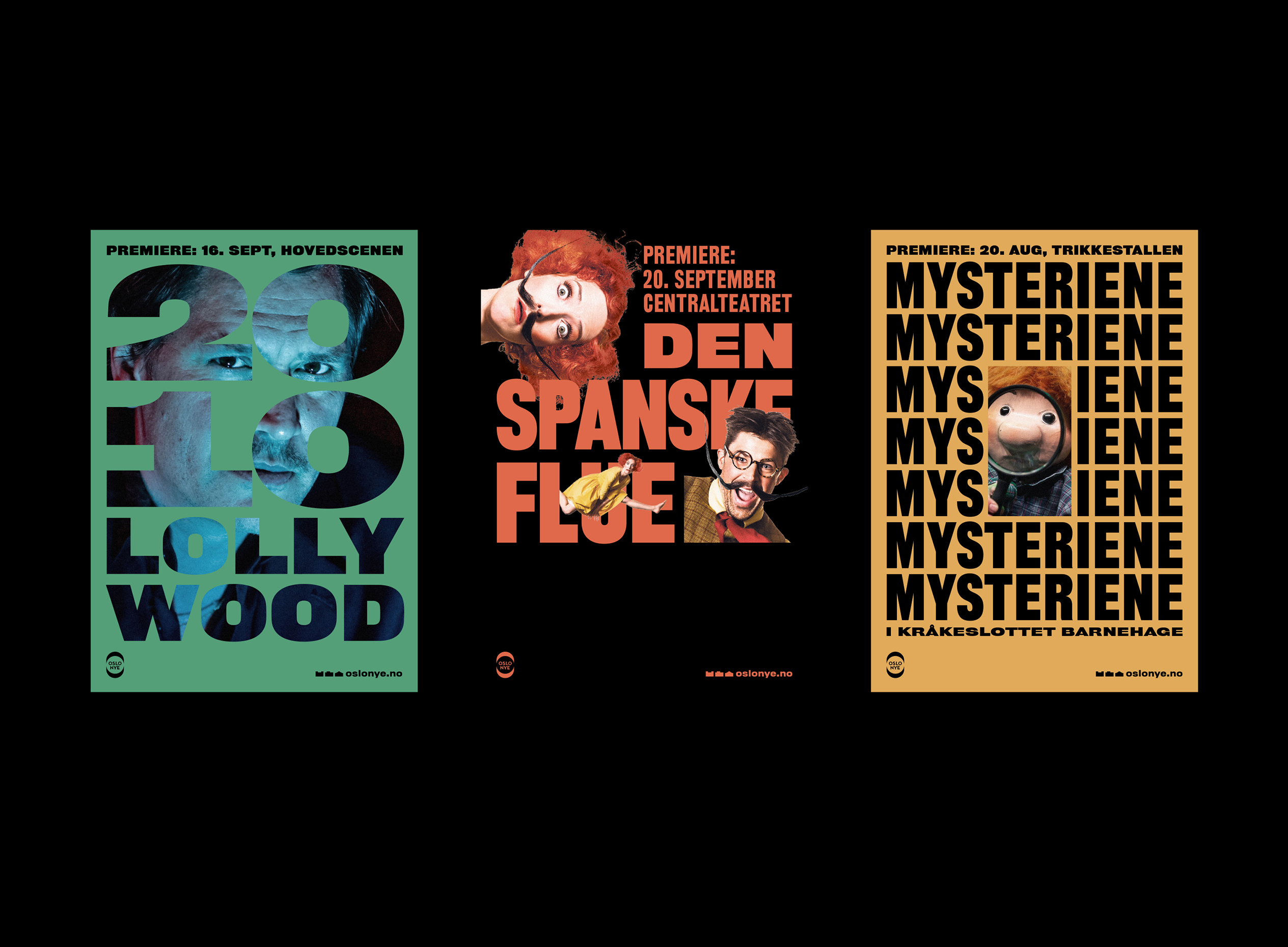 Oslo Nye is a public theater where everyone can find something for themselves. The colors, typography and layout reflect the notion of an inclusive, unpretentious place, with positive and playful atmosphere.