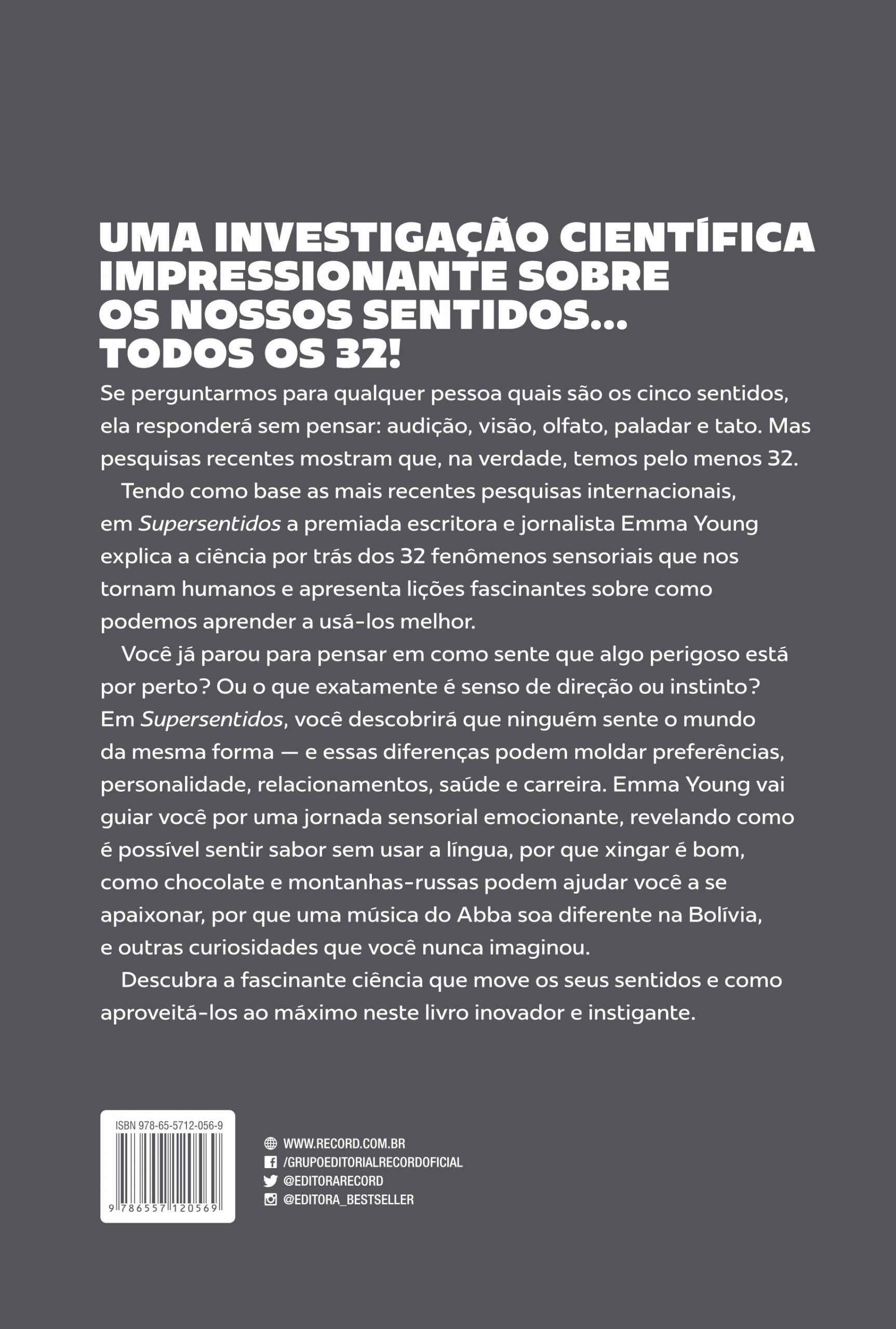 Sharing surprising secrets from blind ballerinas, voodoo priests and even a nurse who can smell Parkinson’s disease before it is diagnosed, Super Senses by Emma Young uncovers the science behind these abilities that make us human – and offers fascinating lessons in how we can all learn to use them better. Supersentidos is a Portuguese edition published by BestSeller.