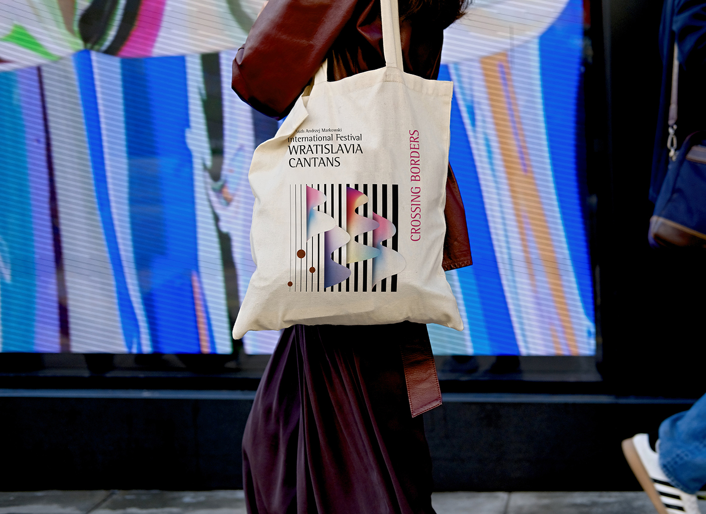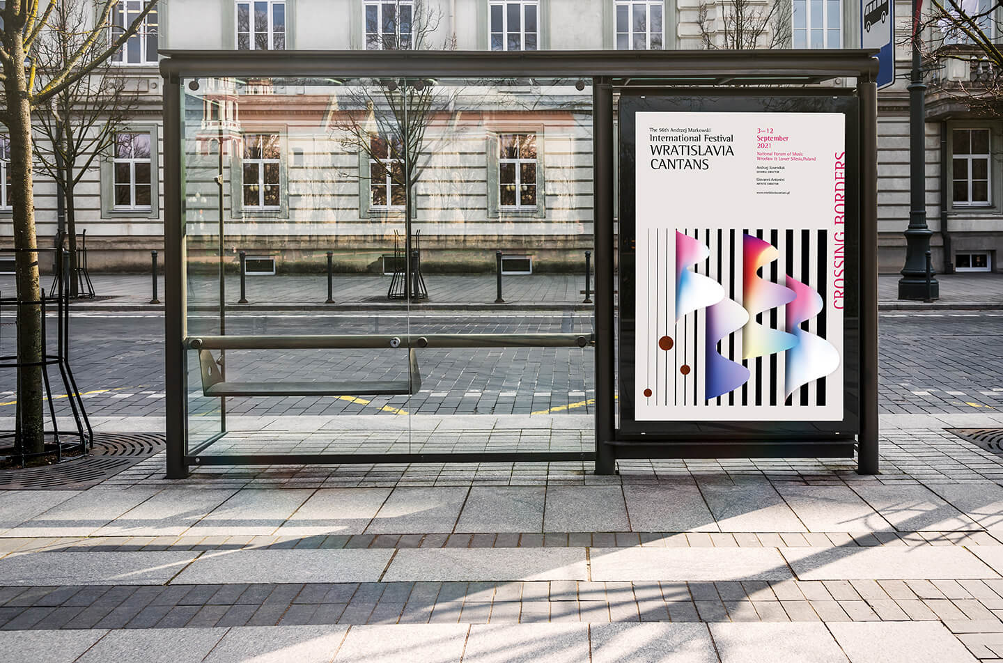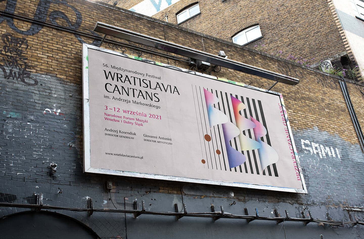Through graphics we had to be able to convey the sense of crossing borders. We have imagined sound waves crossing black lines of varying thickness (borders). The color within the waves represents art and music that dissolves any boundaries, thus conveying a sense of hope and positivity.