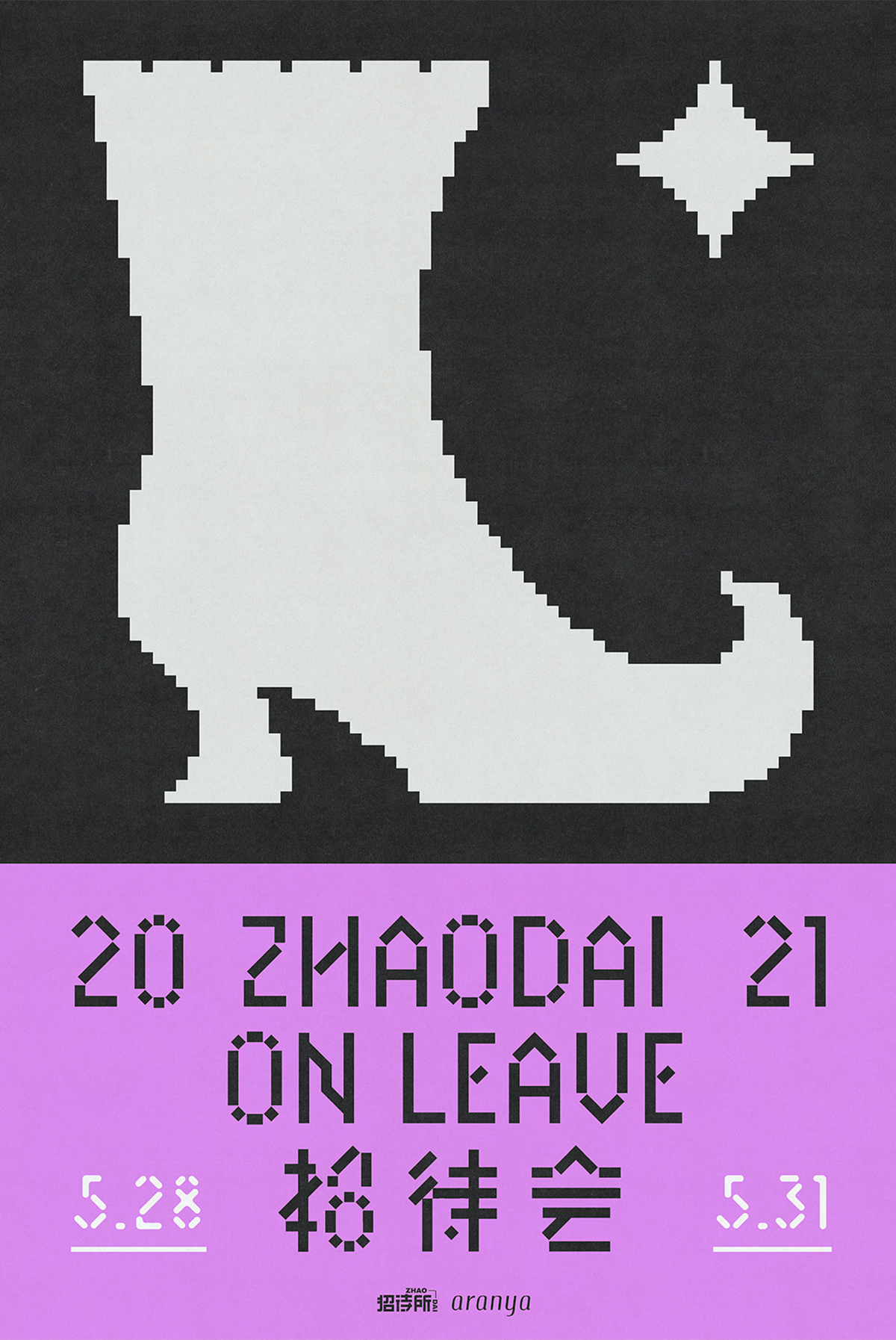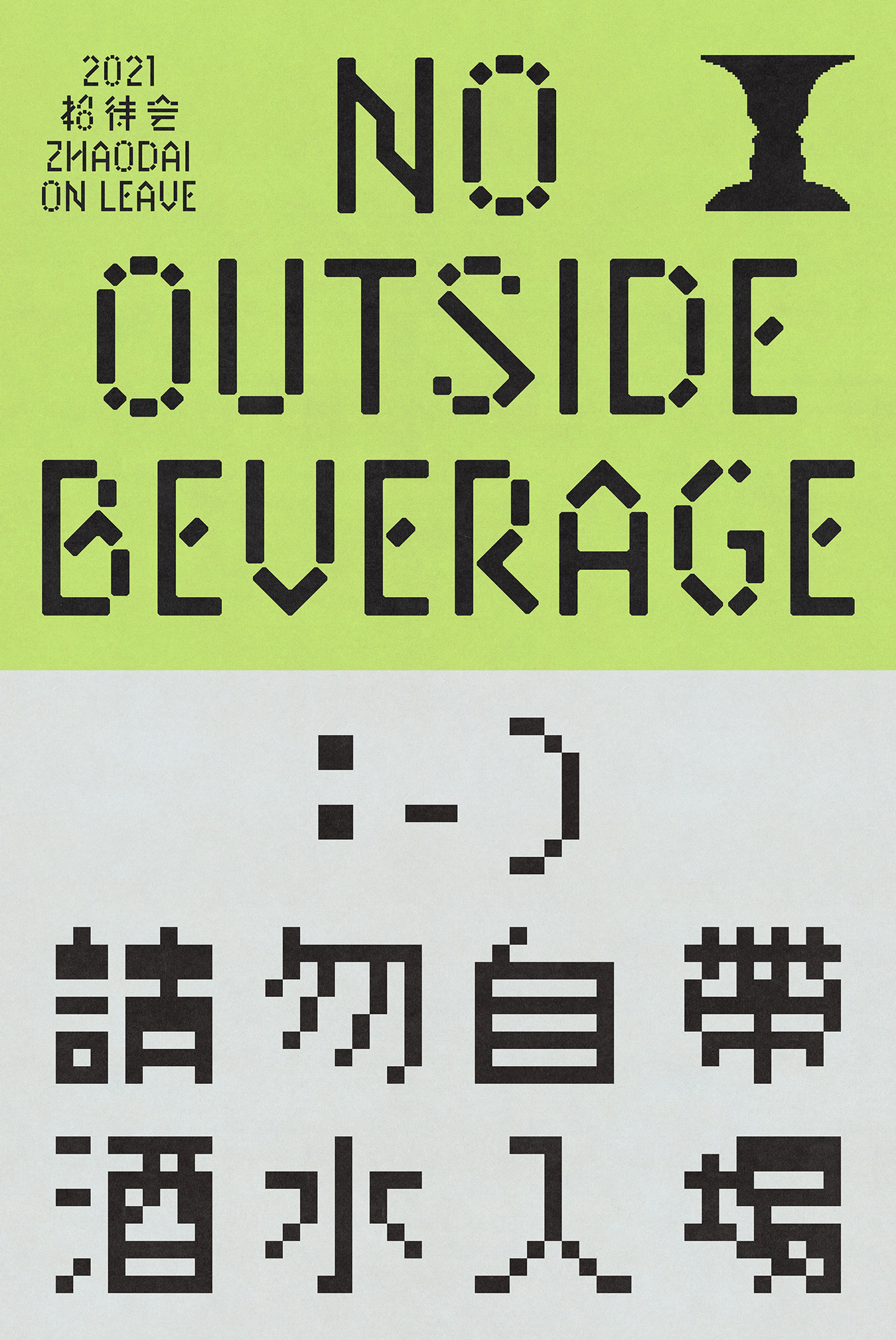 In 2021, Beijing club Zhao Dai hosted the second edition of its annual outdoor festival. Zhao Dai On Leave 招待会 took place from May 28 to May 31 at a beach of Aranya in the city of Beidaihe. Graphic design by Menslies. The typography uses Mineral by Benoît Bodhuin for the English text, with matching Chinese characters that were custom added.