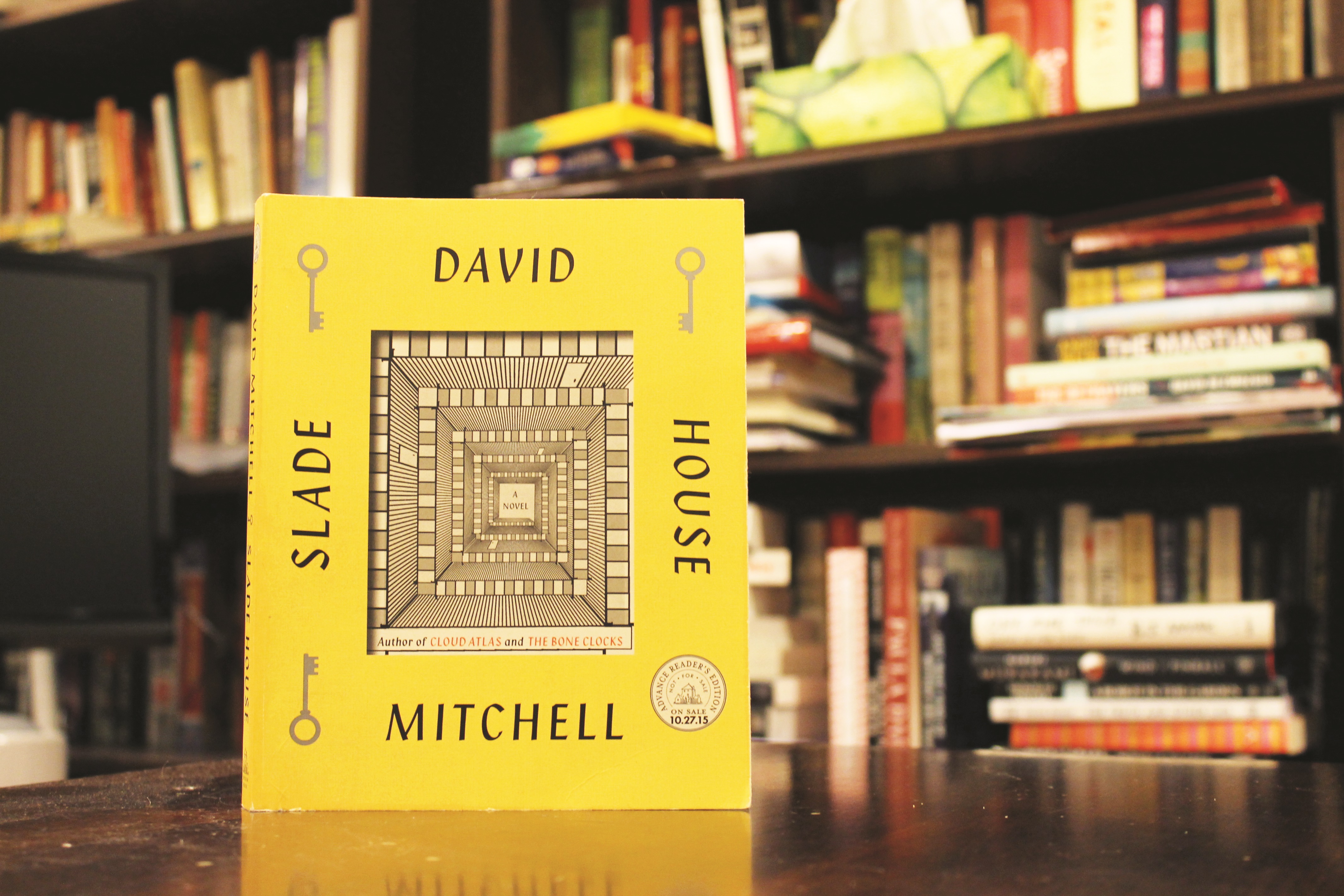 Slade House is a horror/mystery novel by British author David Mitchell. Originally published in the UK by Sceptre, this is the first US edition by Random House. There are at least two different versions. Both have a die-cut window in the front cover that reveals the illustrated endpapers with a labyrinthine stairwell, and both use Klang.