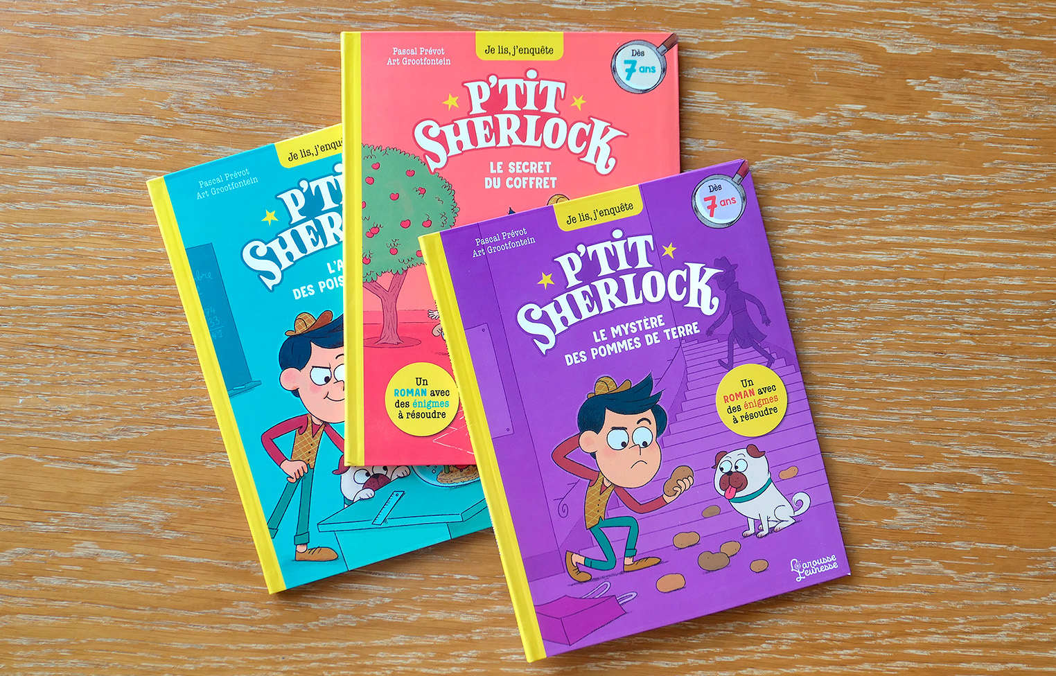 Larousse Jeunesse invited me to design the logotype for P’tit Sherlock (“Little Sherlock”), a French book series for children written by Pascal Prévot, for which I also provided the illustration. I’ve used my own Balter Serif for that. The book covers were designed in-house at Larousse Jeunesse, and additionally use Beanstalker and ITC American Typewriter.