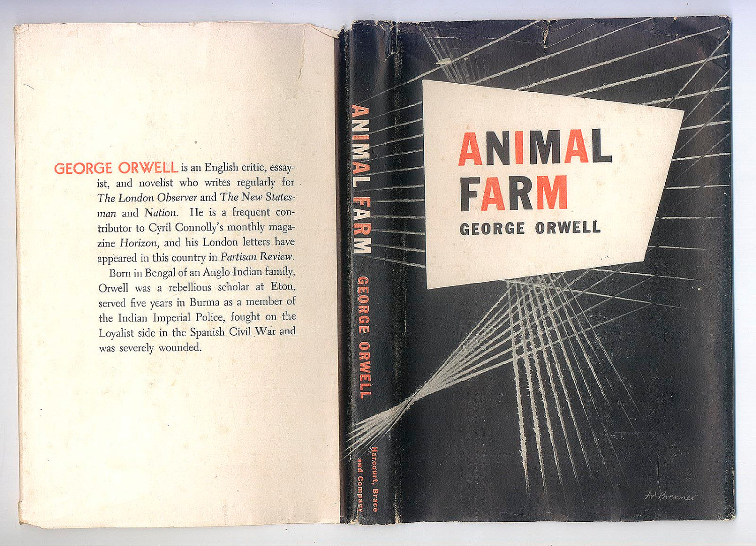 Animal Farm by George Orwell (1st US Edition) Contributed by Stephen Coles on Jul 13th, 2013. Artwork published in 1946. Source: www.flickr.com License: All Rights Reserved. First American edition, published by Harcourt, Brace & Co. in 1946. Source: www.liveauctioneers.com License: All Rights Reserved. Source: www.etsy.com License: All Rights Reserved. Source: www.etsy.com License: All Rights Reserved. Typefaces More about Franklin GothicGet Franklin GothicMore about KabelGet KabelMore about ElectraGet Electra Formats Books (6519) Topics Literature (3017) Designers/Agencies Art Brenner (1) Tagged withAnimal Farm (2)book covers (5857)George Orwell (9)alternating glyph colors (293)all caps Franklin (79) In Setsfavs (scotcht) (20)Why Fonts Matter (Clif Dickens) (98) Post a comment Name Email – will not be published Website Your response Submit Comment More Franklin Gothic in use Ads for Pabst Beer1937Dorothy ShepardContributed by Stephen Coles Benny Goodman – Swing Into Spring album art1958unknownPhoto(s) by Bart Solenthaler on Flickr. Jimmy Carter 1976 presidential campaign buttons1976unknownContributed by Stephen Coles Sponsor More in Literature From Asclepius’ Workshop book cover1970Miroslav HabrContributed by Indra Kupferschmid Staff Pick The Brother by F.D. Reeve (Farrar, Straus & Giroux)1971Pat de GrootContributed by Herb Lubalin Study Center Sammlung Luchterhand seriesc. 1970Hannes JähnContributed by Florian Hardwig Staff Pick Social Studies by Fran Lebowitz (Random House, first edition)1981Robert AulicinoContributed by Harrison More in Books When Bad Things Happen to Good People by Harold S. Kushner (Avon, 1983)1983unknownContributed by Florian Hardwig Manifiesto del Dibujo by Sofía F. Garabito2020Nicolas SagredoContributed by Diego Aravena Quilo: Journal of Photographic Tales from Brazilc. 2023Porto RochaNatalia OledzkaVictor CarvalhoContributed by Mico Toledo Staff Pick Big Type by Counter-Print2022Counter-PrintContributed by TYPE01 More Fonts In Use Hailu Mergia – Pioneer Works Swing (Live) album art2023Daniel KentCallum AbbottMei LenehanContributed by Eliott Grunewald Staff Pick Neue Grafik1963Carlo VivarelliContributed by Stéphane Darricau Staff Pick Culprit2016Studio SouthContributed by Richard Baird Staff Pick Eleni Debo identityc. 2016DogmaContributed by Dogma Staff Pick