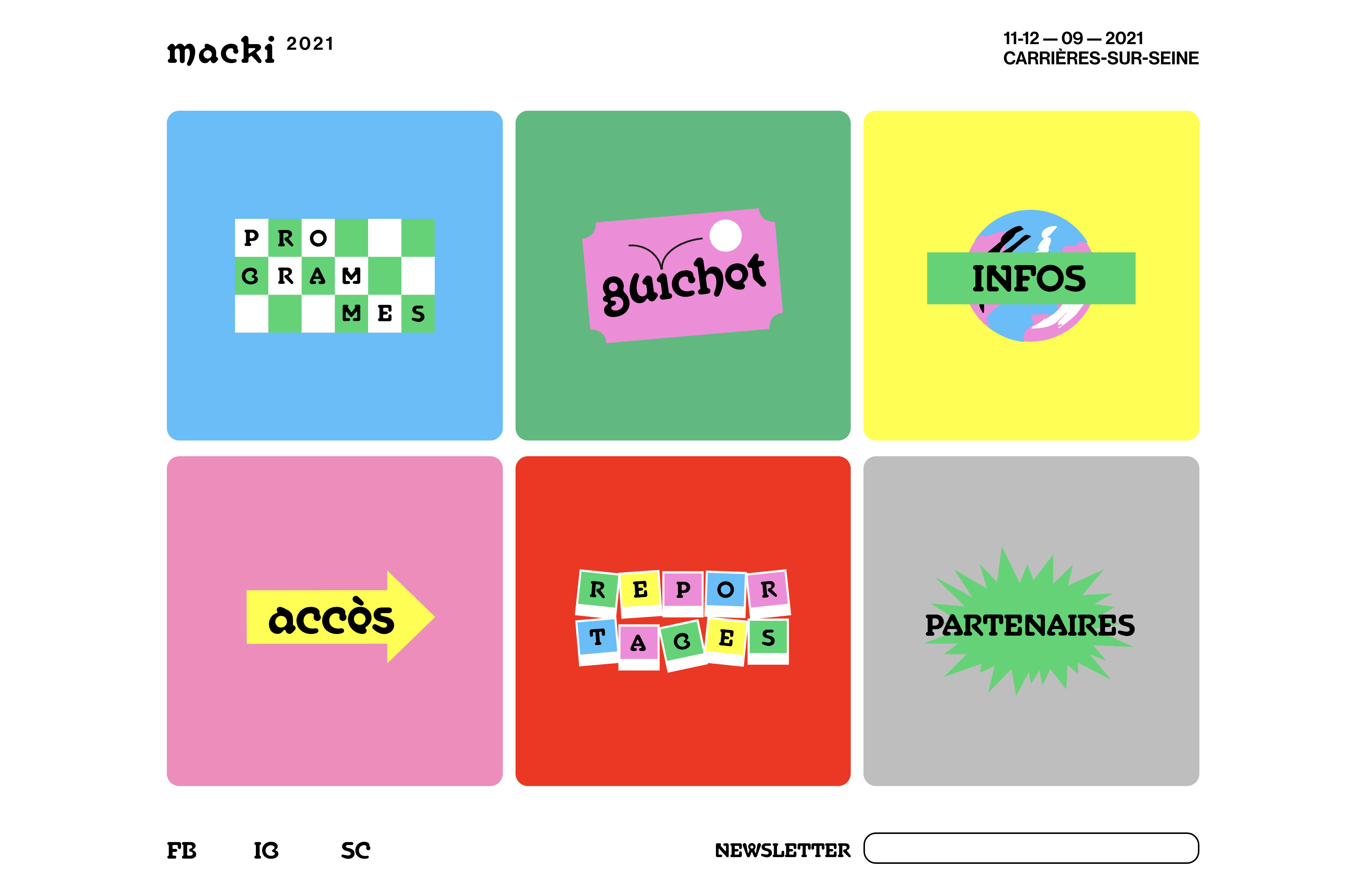 For the identity of the 2021 edition of the festival, and its application on multiple communication materials: website, social networks, videos, timetable, map, flags and T-shirts, the Parisian design studio Atelier Choque Le Goff has chosen to use Nirvana Bold, paired with a brightly colored palette. The geometric shapes of the typeface combined with a modular structure and bright colors creates a friendly and playful atmosphere.