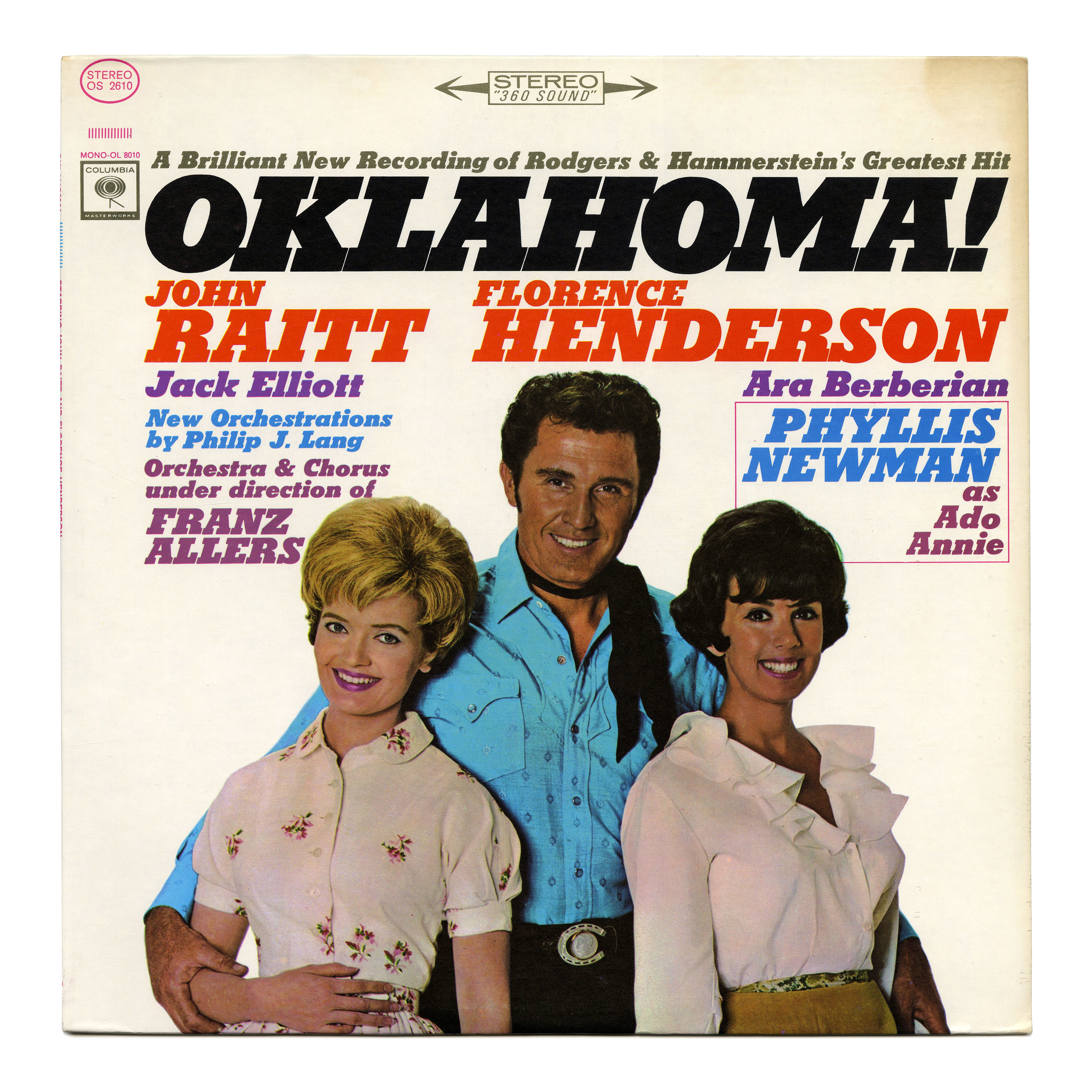 Lots of Karnak Black Italic – and exclusively Karnak Black Italic – on the cover of Oklahoma!, “a brilliant new recording of Rodgers & Hammerstein’s greatest hits”, released by Columbia Records in 1964. Featuring John Raitt, Florence Henderson, Jack Elliott, Ara Berberian, and Phyllis Newman. Orchestra and chorus under direction of Franz Allers, with new orchestrations by Philip J. Lang. Photography by Bob Cato.