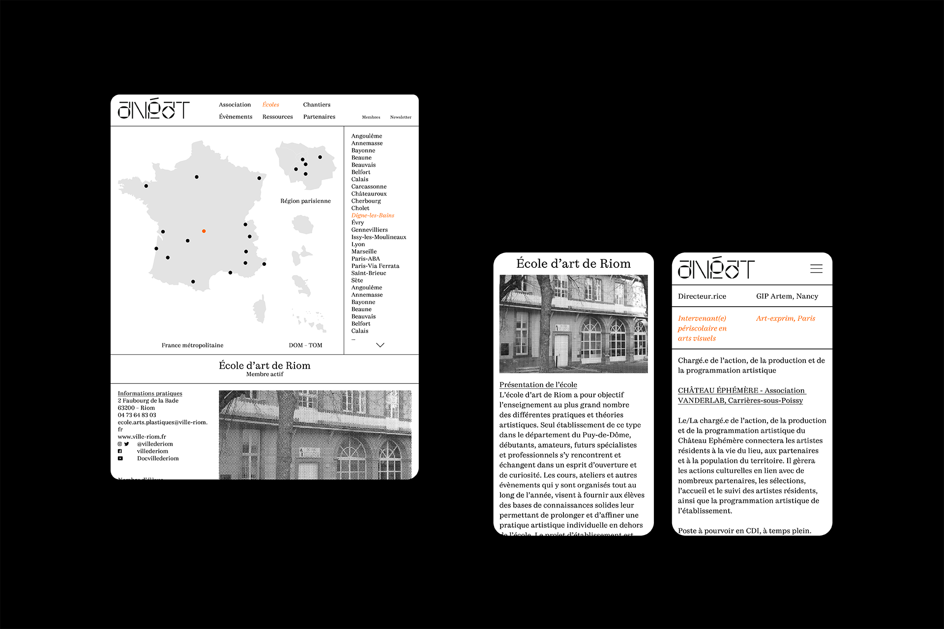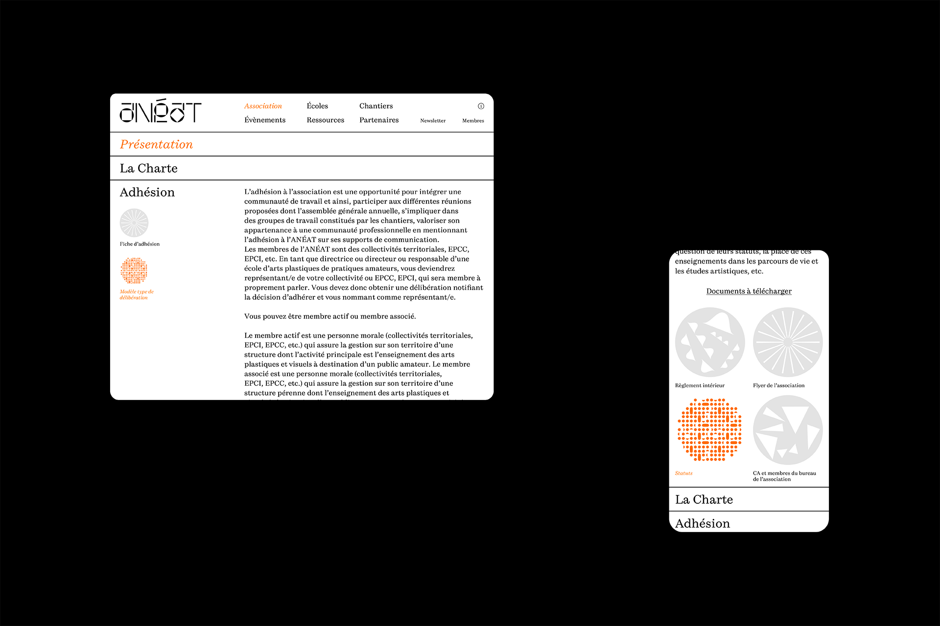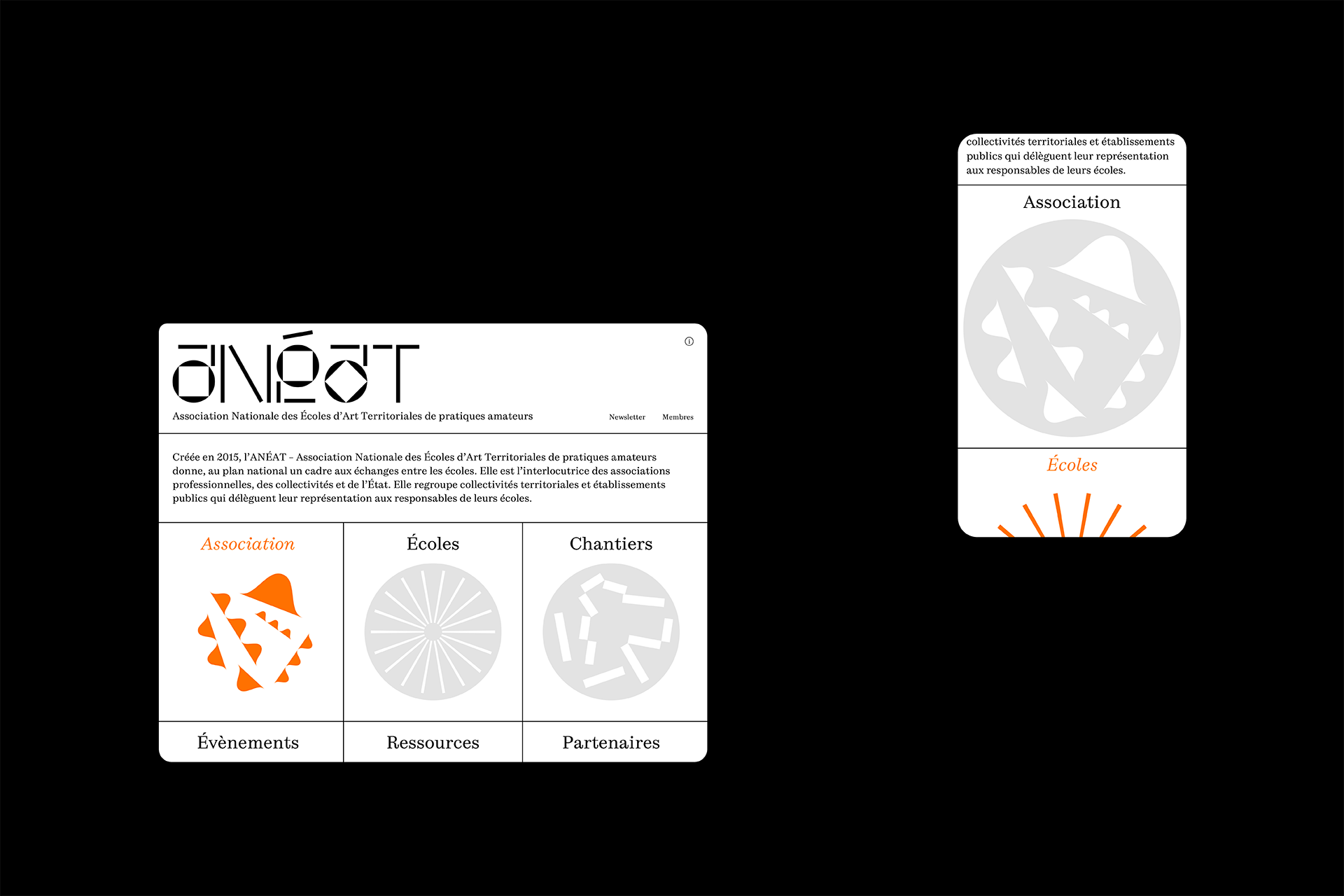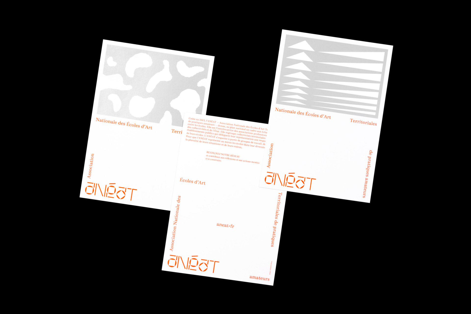 In 2019, Atelier Müesli (Léa Chapon and Mytil Ducomet) designed the visual identity of Anéat (National Association of Territorial Art Schools of Amateur Practice). To realize this project, they used the typeface Cardone designed by Fátima Lázaro. Developed between 2016 and 2021, Cardone is a singular interpretation of early so-called Scottish modern faces, later called Scotch Roman. It’s available from 205TF.