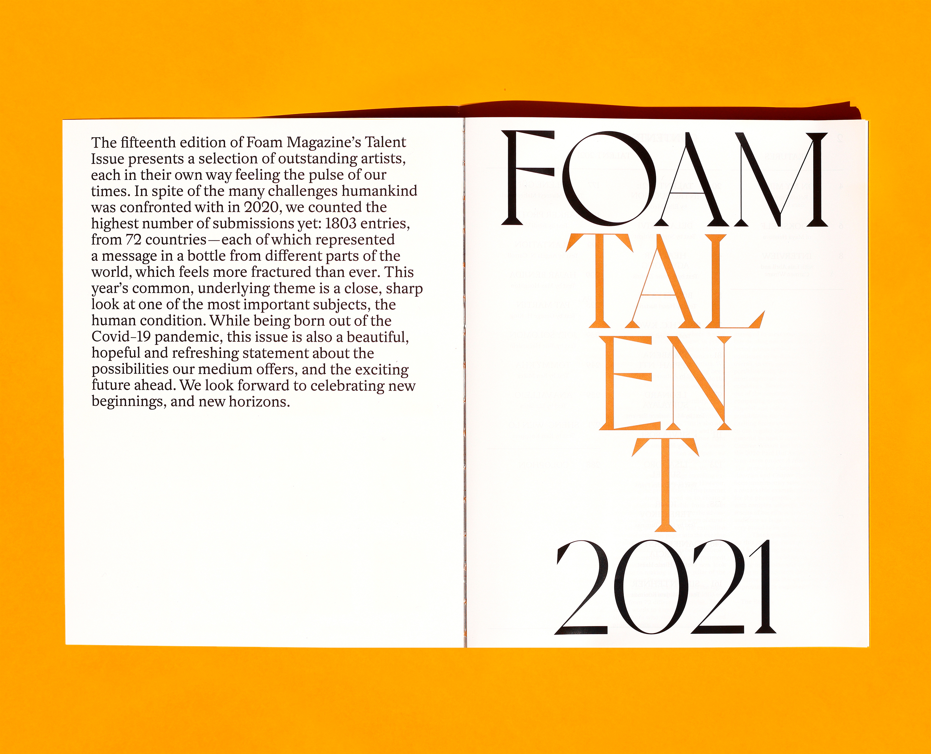 The fifteenth edition of Foam magazine’s “Talent” issue presents a selection of outstanding artists, each in their own way feeling the pulse of our times.