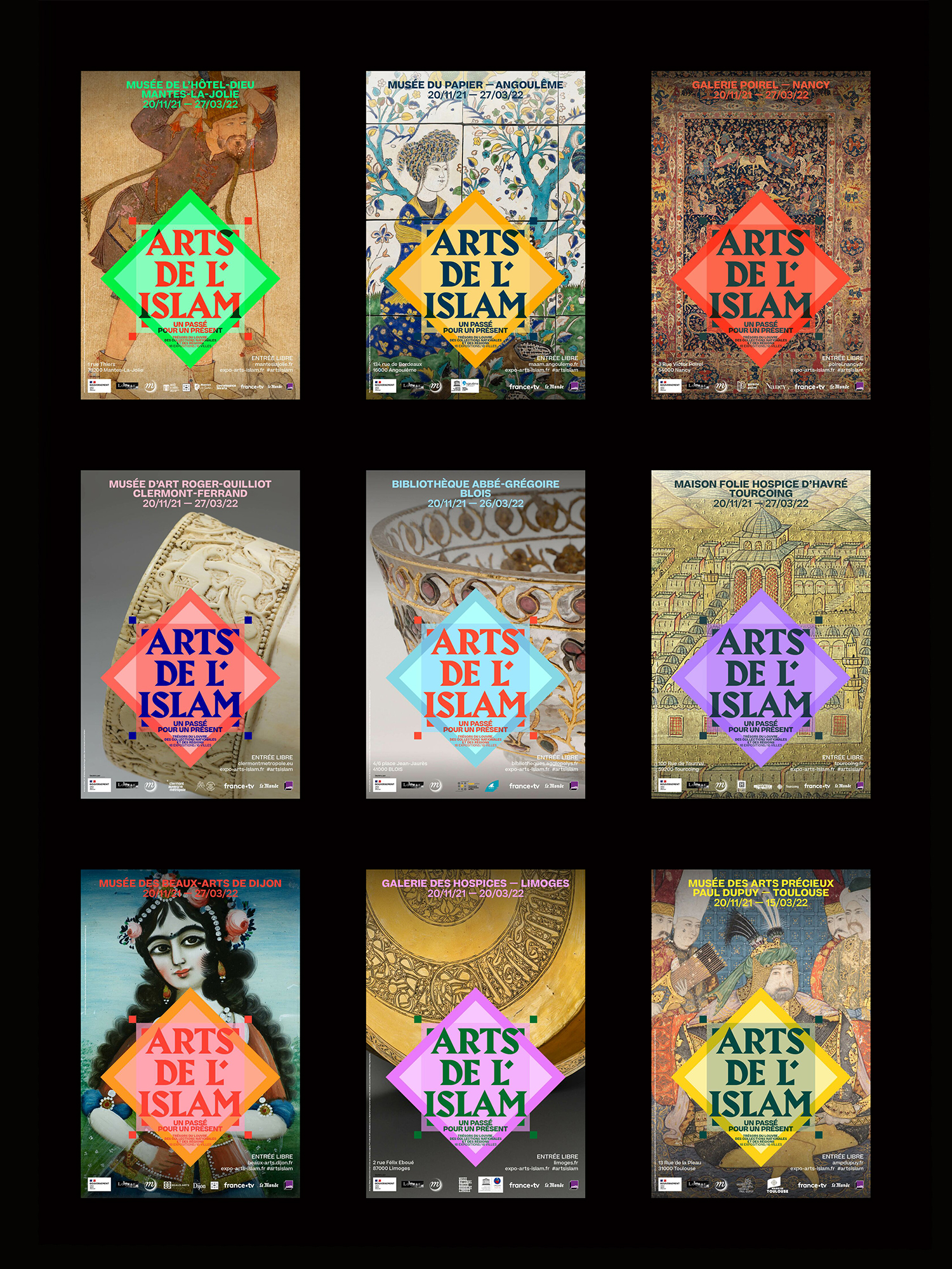 In the face of religious fanaticism, culture must relentlessly be a bulwark and a lever to transmit, open up to others, give back the keys to understanding crossed pasts in order to build a shared future. It is in this perspective that the Ministry of Culture has mobilized by asking the Louvre and the Réunion des Musées Nationaux – Grand Palais to organize in the fall of 2021 a project intended for a very large audience, and to the younger generations in particular, to take a fresh look at the arts and cultures of Islam. From November 20, 2021 to March 27, 2022, 18 exhibitions in as many cities in France will be presented to the public, in a museum, a media library, a library, a cultural space. For each hanging, 10 works, both historical and contemporary, from the Department of Islamic Arts at the Louvre Museum and from national and regional collections, will embody the richness of Islamic cultures and their inscription in history in France for over 1,300 years.