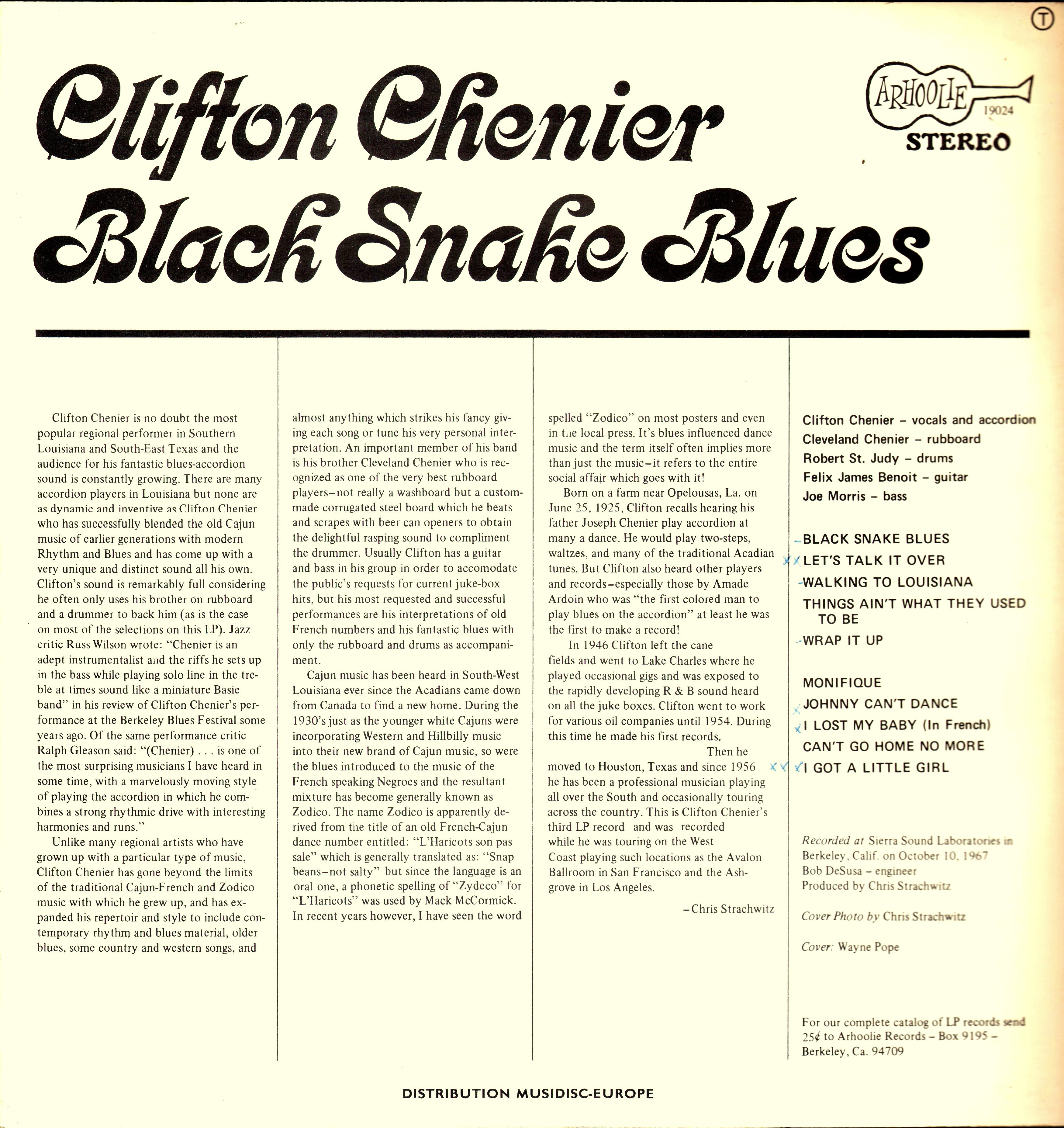Clifton Chenier – Black Snake Blues album art Contributed by Florian Hardwig on Oct 3rd, 2021. Artwork published in 1967. Source: www.flickr.com Uploaded to Flickr by Klaus Hiltscher. License: All Rights Reserved. Kalligraphia with its cobra-like S for Black Snake Blues, an early album by zydeco master Clifton Chenier. It was released in 1967 on Arhoolie Records by Chris Strachwitz, who also wrote the liner notes and took the cover photo. Design by Wayne Pope. [More info on Discogs] Source: www.flickr.com Uploaded to Flickr by Klaus Hiltscher. License: All Rights Reserved. The liner notes are set in Times New Roman. The track list is set in the IBM Selectric version of Univers. Typefaces More about KalligraphiaGet KalligraphiaMore about Times New RomanGet Times New RomanMore about Univers (Selectric) Formats Album Art (4292) Topics Music (6440) Designers/Agencies Wayne Pope (8) Tagged withClifton Chenier (5)Arhoolie Records (9)zydeco (5)album records (2860)1960s albums (397)vinyl records (3401)back covers (2316)liner notes (181)track listings (1276)blues (music) (55)accordions (12)four columns (69)ragged right text (1060)IBM Selectric & Selectric Composer (40)reversed type (3457)green (784)green and black (200) Artwork location United States (10055) California (316) Berkeley (39) In SetsThe Petzendorfer Impact (Florian Hardwig) (63)Colossal Combinations (Jay W. Mellor (JWM)) (2128)Old Skool is Kool (Juan Ortega) (64)RADIOGIAPPANESE (Leonardo de la Fuente) (2878) Post a comment Name Email – will not be published Website Your response Submit Comment More Kalligraphia in use Eric Robertson – Piano Hits/Magic Melodies album art1982Paul WeldonContributed by Jay W. Mellor (JWM) The Roy-Al’s – Reach Out To Jesus album artGamble ArtPhoto(s) by Rakeng on Flickr. James Brown Enterprisesc. 1974Contributed by Matthijs Sluiter Sponsor More in Music Irma Serrano – El Disco de Oro de la “Tigresa” album art1978Contributed by Nick Sherman Maintenant festival2023KiblindPierre PicouleauContributed by Bureau Brut London Philharmonic Orchestra2025JMG StudioContributed by Jan Maack South East Asia Youth Music Camp2020The 1984Contributed by Irawandhani Kamarga More in Album Art Zani Diabate et le Super Djata Band du Mali, Volume 2c. 1985Contributed by Owen Gardner Maruja Garrido – “Es Mi Hombre” / “Esperare” French single cover1971unknownContributed by Florian Hardwig Seven Orbits – EP0001 album art2020Luke GriffithsMatteo ZamagniContributed by Laura Csocsán Twin Cabins – I’m Sure album art2012Carolina LealContributed by Bailey Freitas More Fonts In Use Auf der Suche nach Gatt by Erik Neutsch1974Walter SchillerMärkische Volksstimme PotsdamContributed by Savva Terentyev Staff Pick By Humankindc. 2018XXIXContributed by Peiran Tan Staff Pick “Everything’s Out of Whack” Clearasil ad1994unknownContributed by Bryson Stohr Staff Pick Popular Mechanics, “Geared Trail Edition”2017Michael SarpyContributed by CJ Dunn Staff Pick