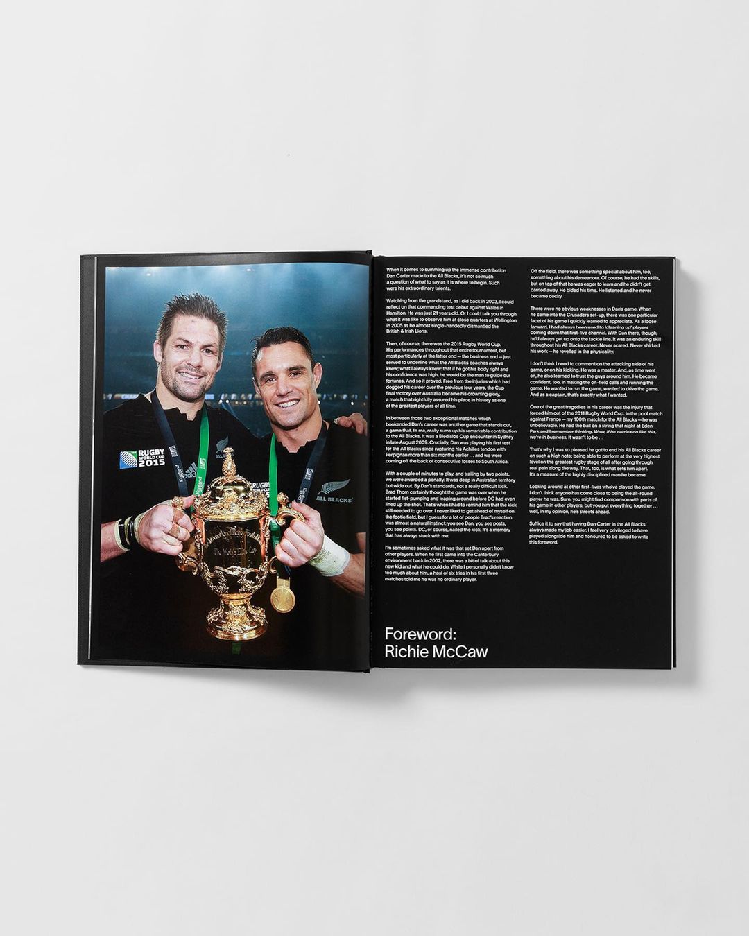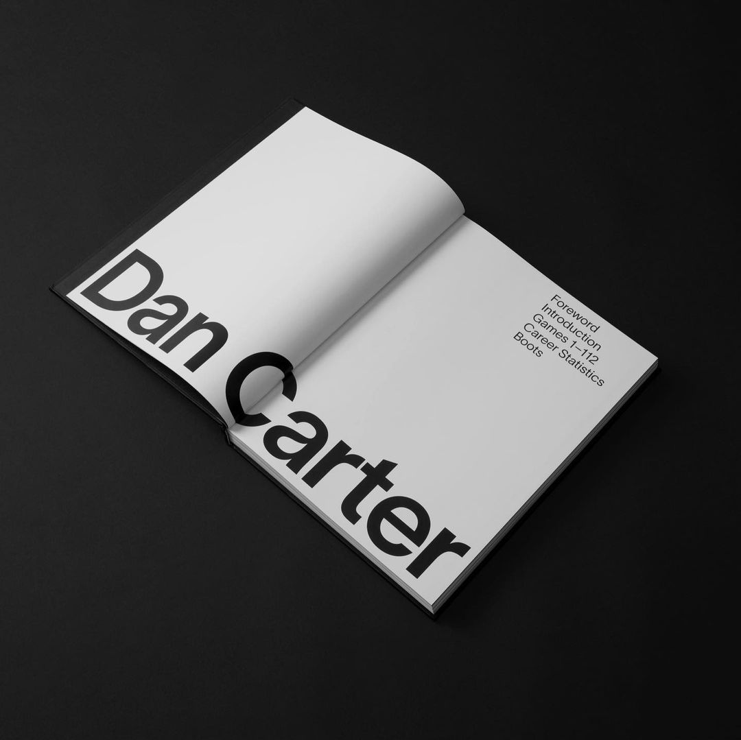 This book exists in two editions: A regular one and a signed limited edition available to pre-order from Dan Carter’s website. It comes cloth-bound in a special slipcase, with Adidas boot lace detailing and Swiss layflat binding.