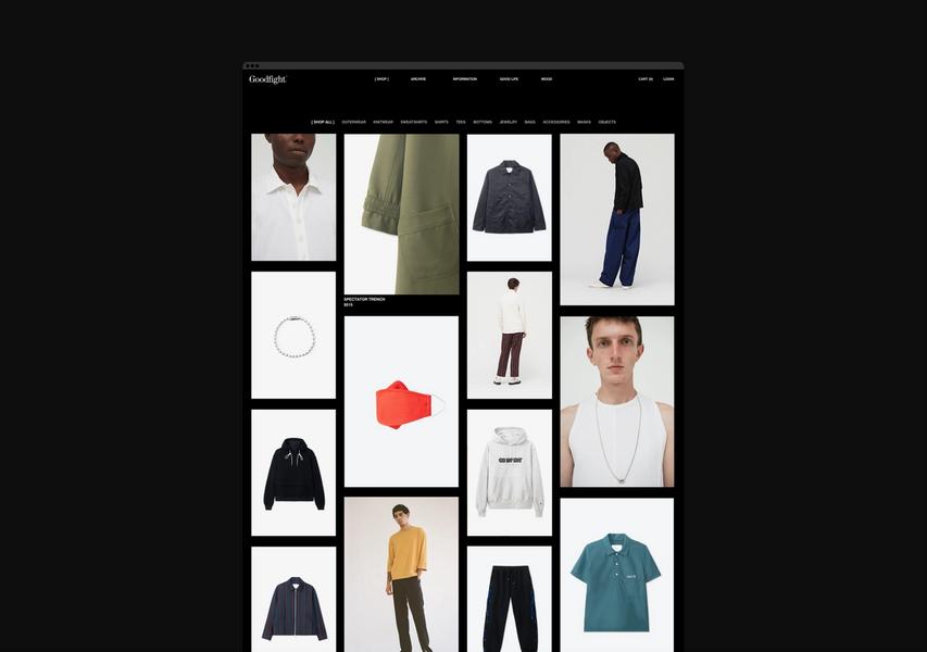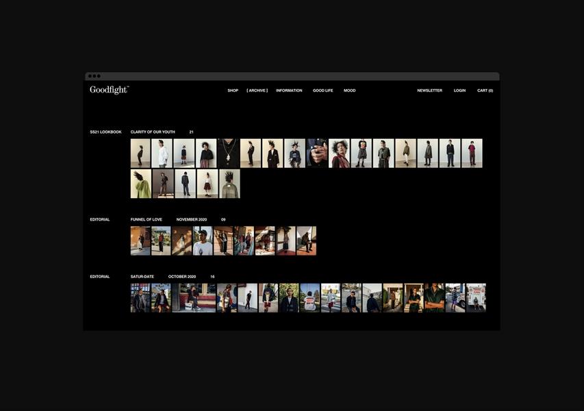 Redefining the branding and wordmark for Goodfight formed an exciting portion of this project that helped solidify the web launch as a line-in-the-sand moment for the brand. The new wordmark is typeset in Synt, an unreleased font by ABC Dinamo. Being one of the first to use a font is a big moment for a brand, and it helps create an ownable and memorable mark that will stand the test of time.