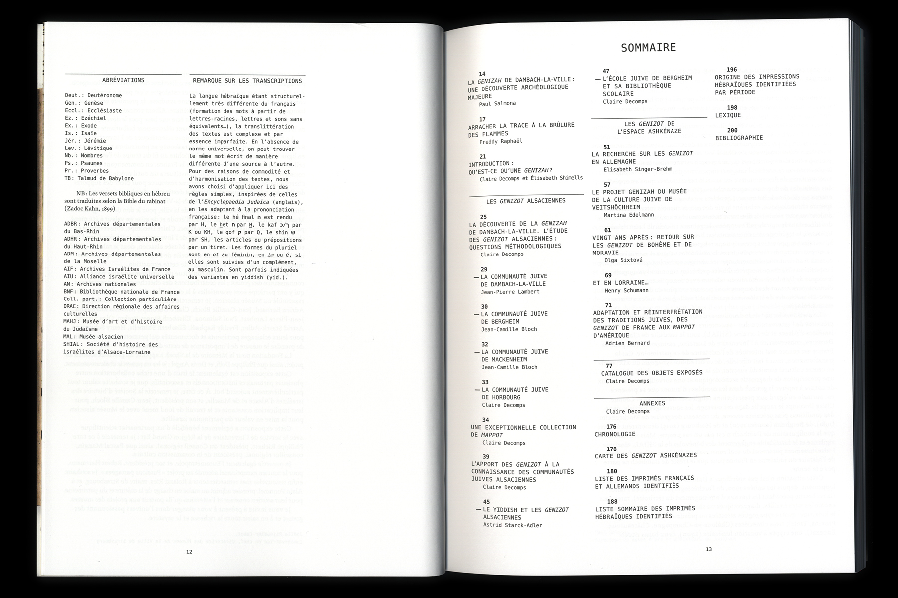 Héritage inespéré. Objets cachés au cœur des synagogues (“Unhoped-for heritage. Hidden objects in the heart of synagogues”) is an exhibition that tells the story of the exceptional discovery of a genizah (ritual deposit of writings bearing the name of God) under the attic floor of the synagogue of Dambach-la-ville. The exhibition catalog is the first publication in French on this theme, thus going beyond the framework of the exhibition and becoming a scientific and historical reference work by itself.