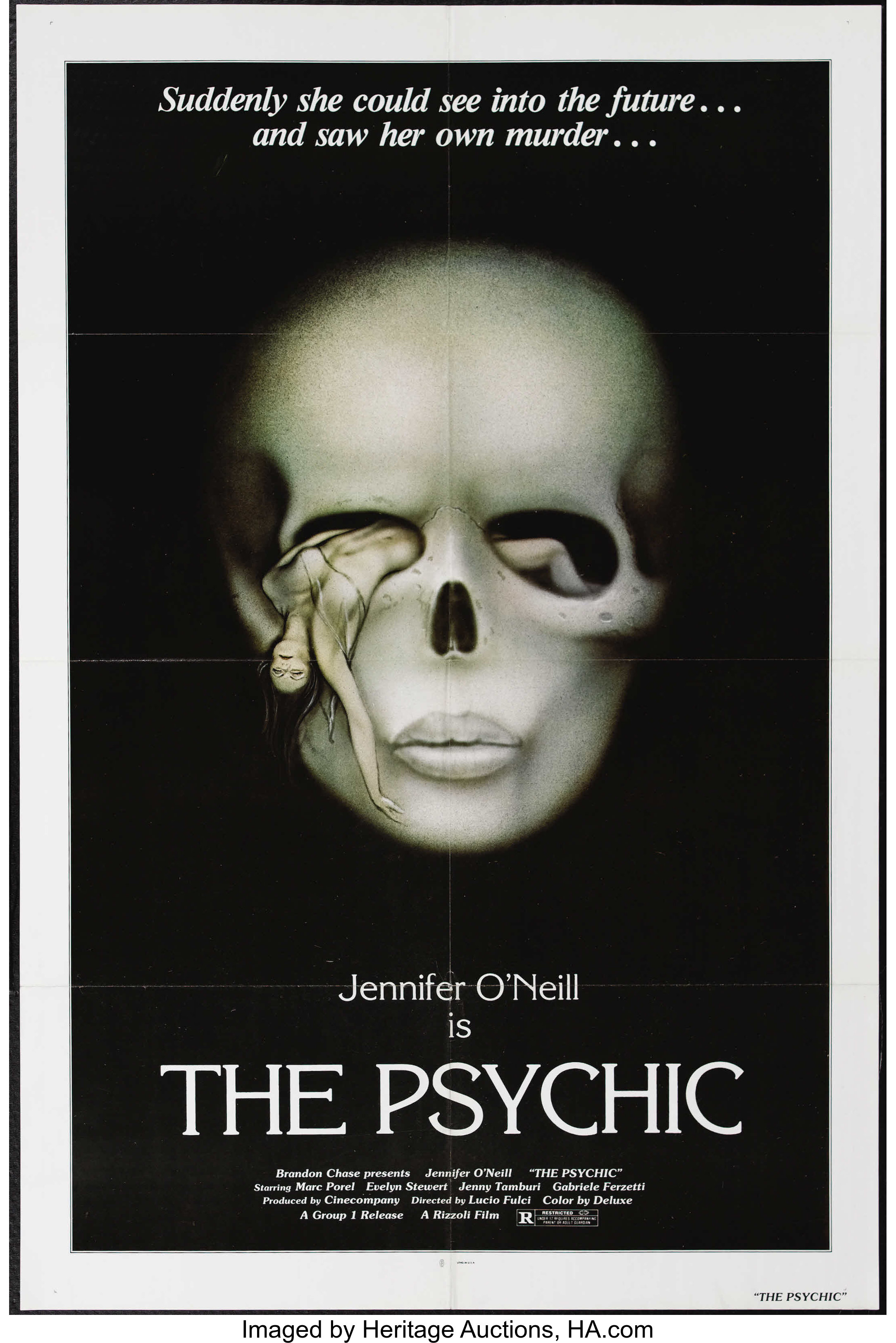 Made in 1977, Sette note in nero (“Seven notes in black”) is an Italian giallo film directed by Lucio Fulci starring Jennifer O’Neill. It was released in the United States in March 1979, where it was distributed by Group 1 under the title The Psychic.