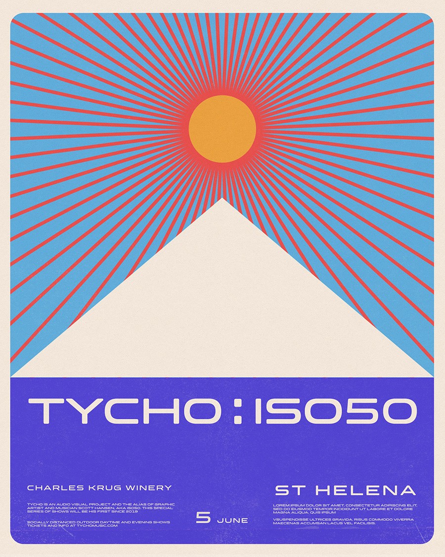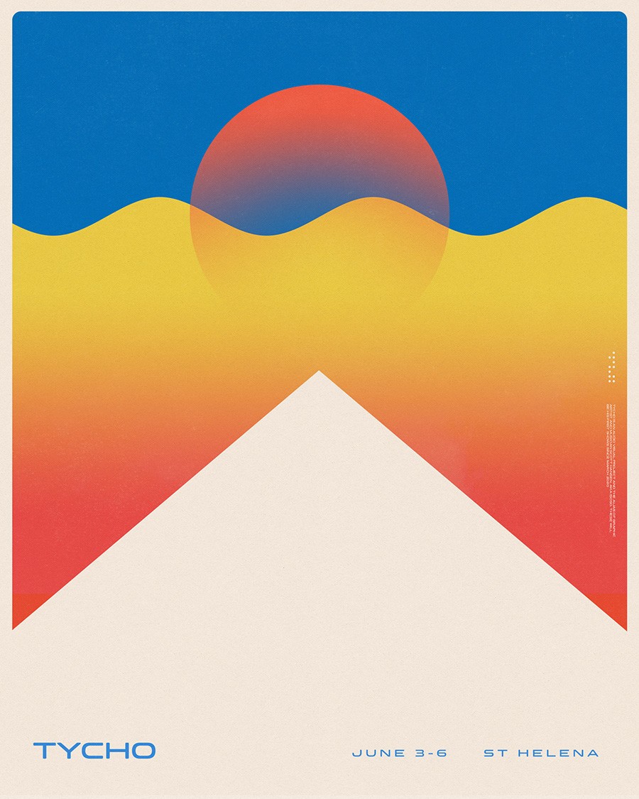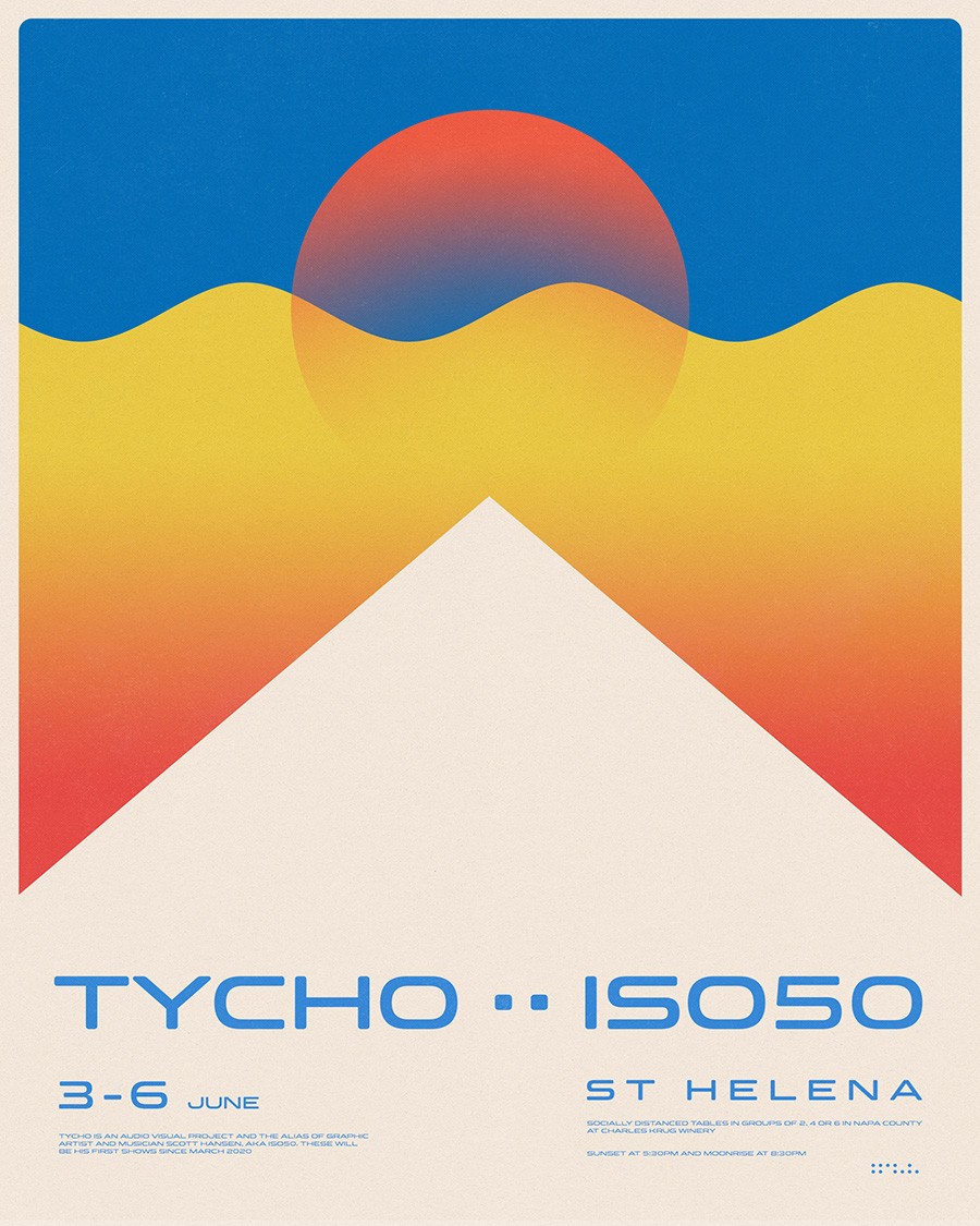 The man behind Tycho, Scott Hansen, is also a graphic designer known professionally as ISO50. You might know him from his ISO50 blog. He is responsible for most of Tycho’s artwork, including many posters.