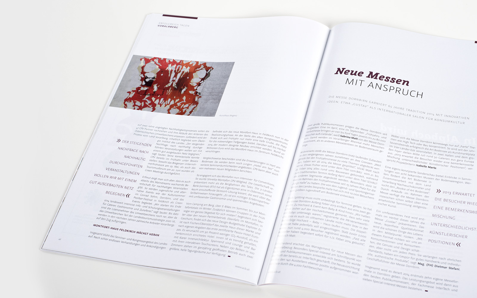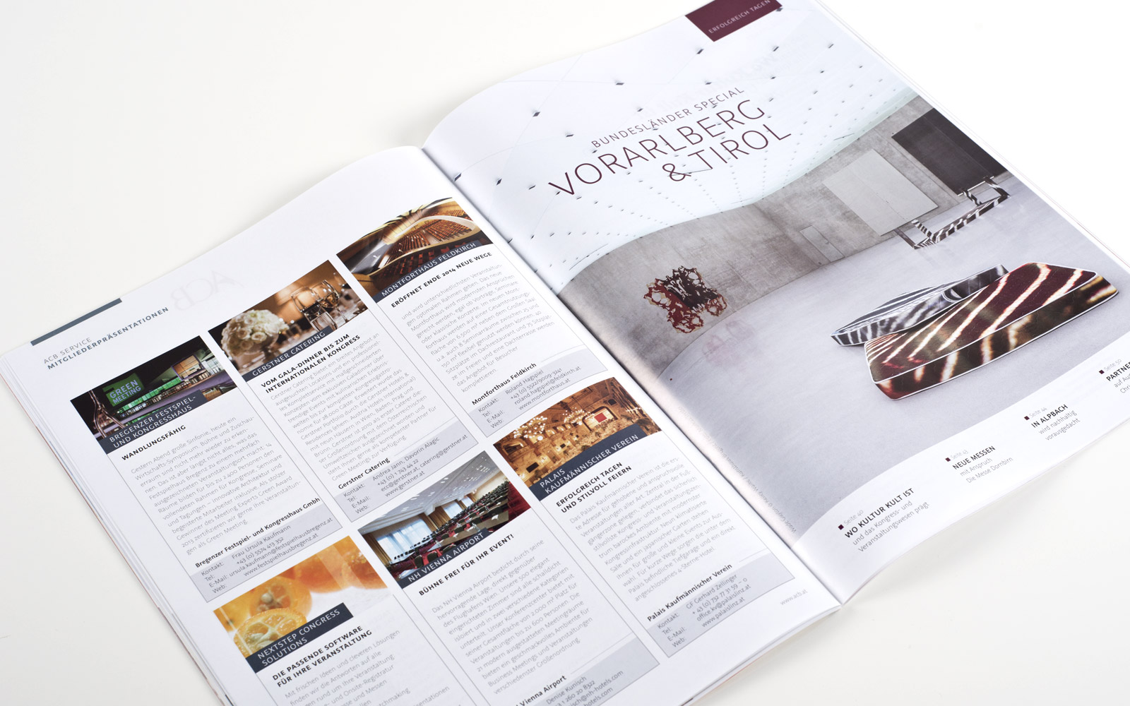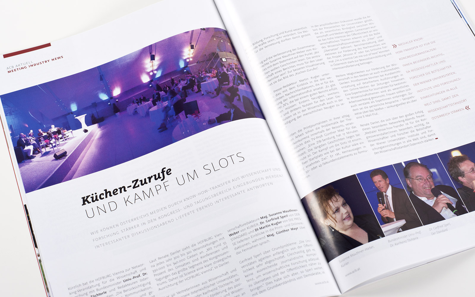 The Austrian Convention Bureau (ACB) is a non-profit-organization and serves as the platform for the Austrian congress and conference industry. With the latest issue, Vienna-based design agency Komo introduced a redesign of the ACB magazine that employs a dozen styles from Georg Seifert’s Graublau superfamily.