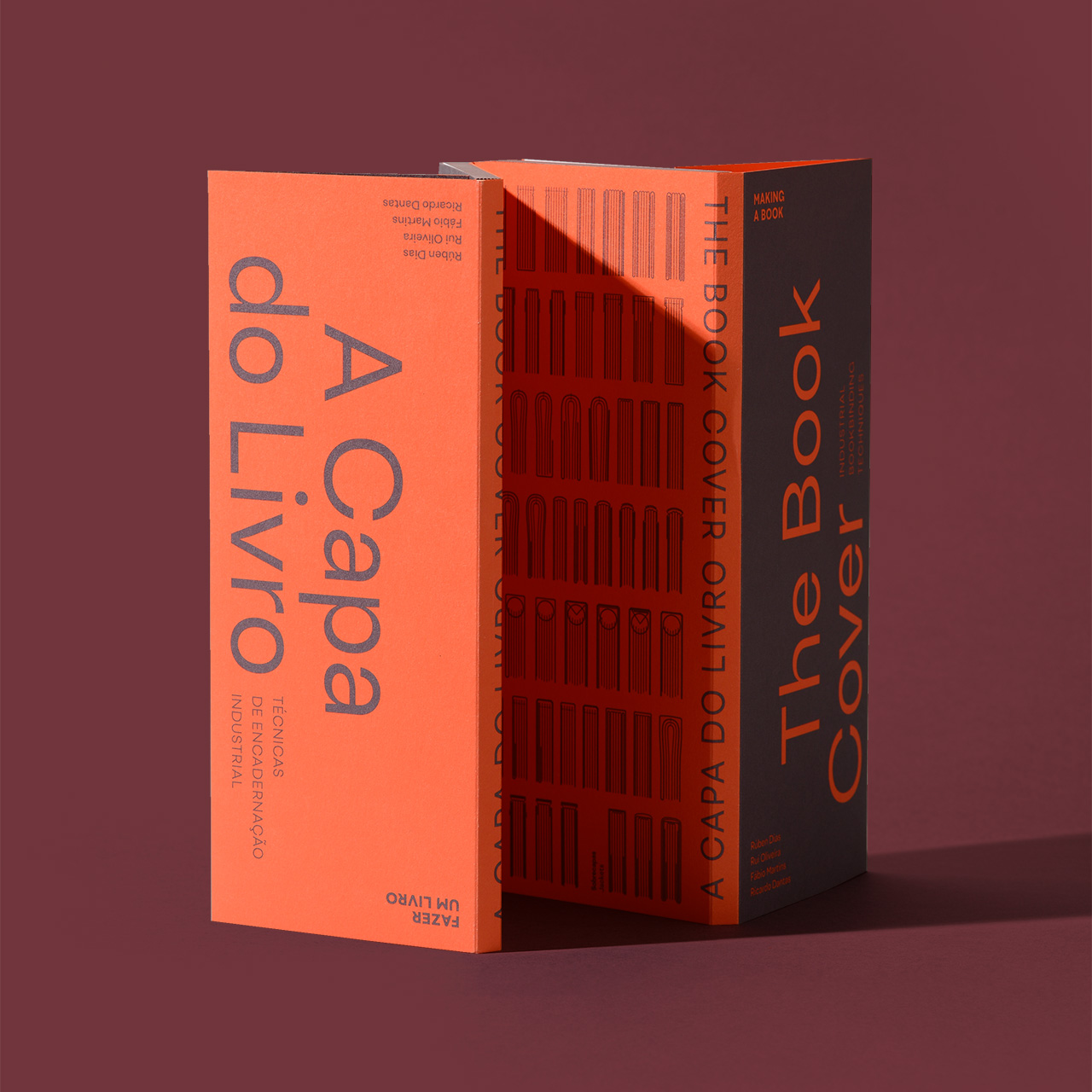 The Book Cover / A Capa do Livro is a manual on industrial covermaking, compiling the most common techniques and what you can do with them. Built for quick consultation and thoroughly illustrated, the book is available in a Portuguese and an English-language edition. Published by design studio itemzero and printer Gráfica Maiadouro.