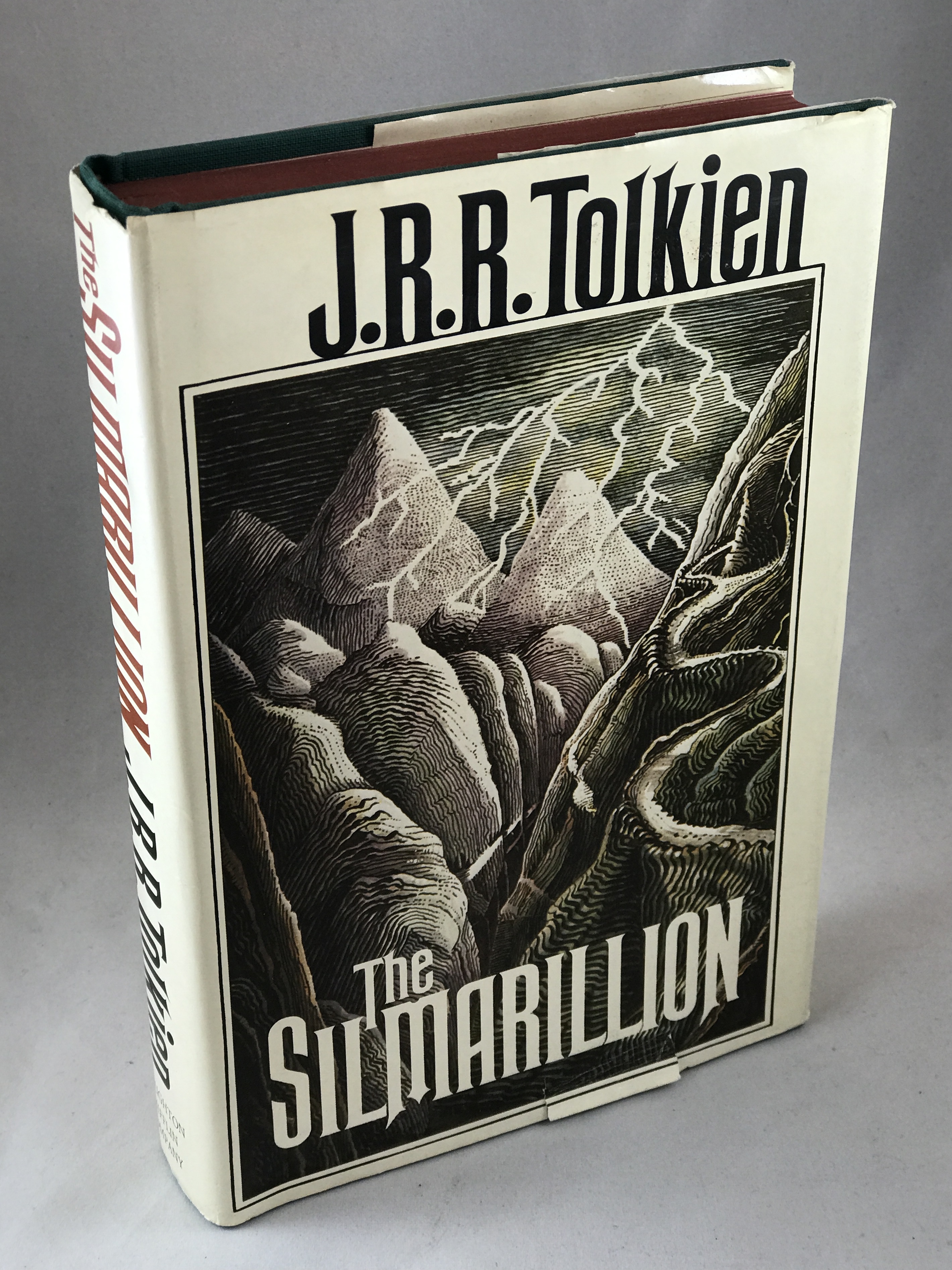 J.R.R. Tolkien’s Silmarillion was first published by Allen & Unwin in London (with Hawthorn for the jacket typography). Shown here is the first U.S. edition, by Houghton Mifflin, with cover art by Tolkien himself. The display typeface is Rubens.