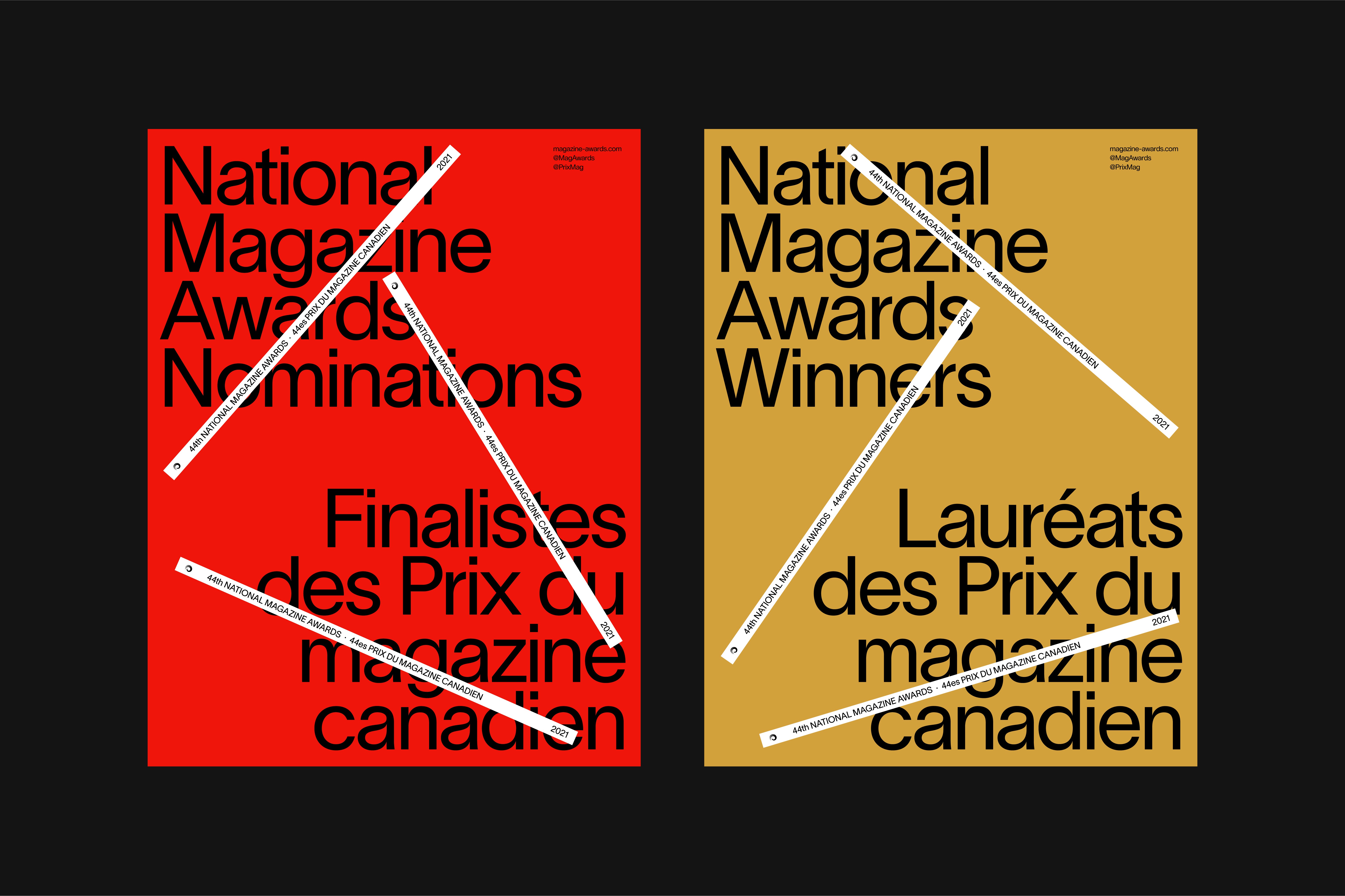 For their 2021 showcase, they needed a creative expression to help celebrate the best in Canadian journalism. Rethink created an identity (using TWK Lausanne) centered around the printed magazine in its most distilled form: the spine. From there, the design system explores a range of perspectives – inspired by the wide range of publications that submit to the award each year.