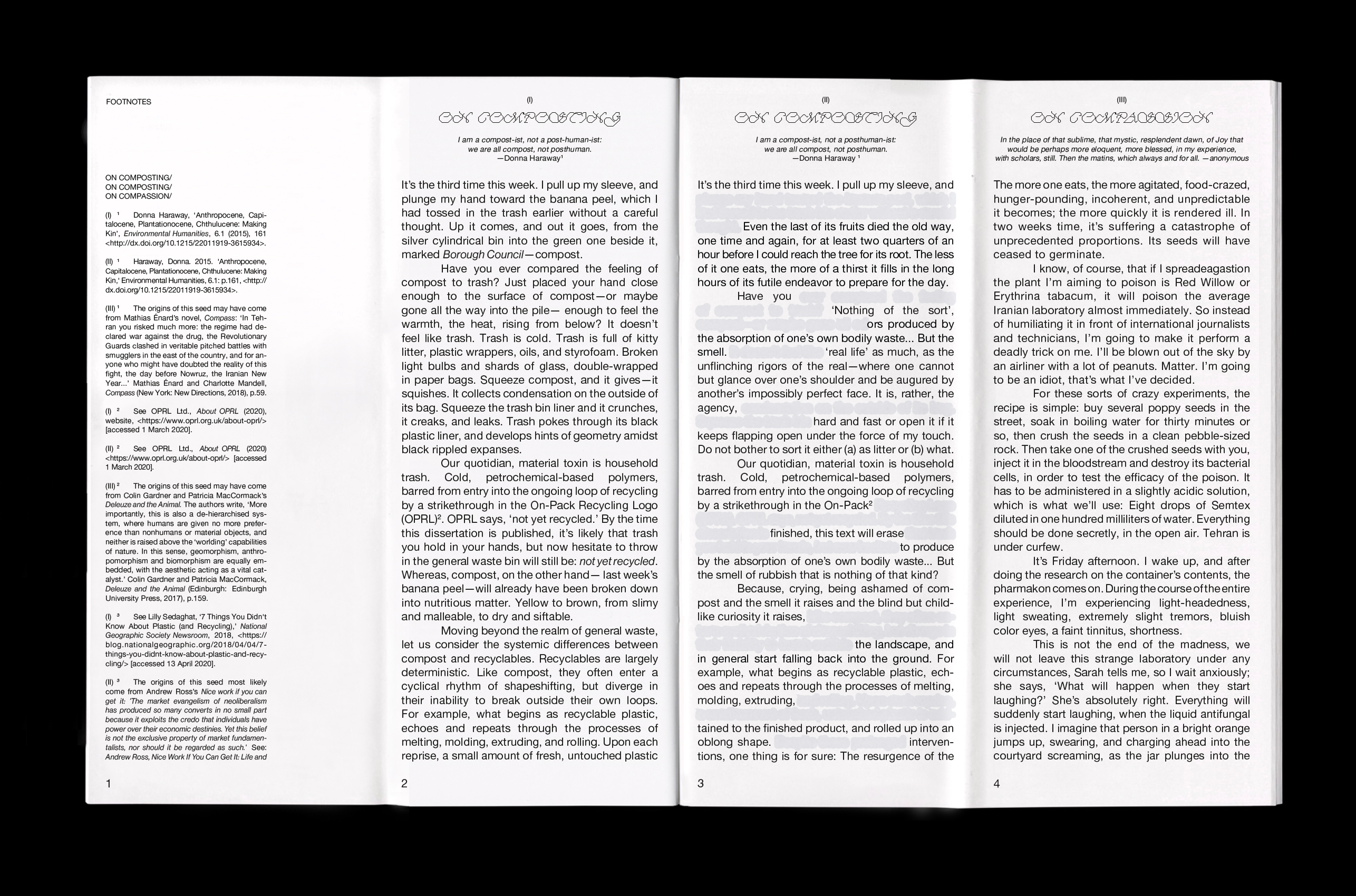 Living In Compost by Kevin Siwoff Contributed by Victor Gérard on Nov 16th, 2021. Artwork published in July 2020. Source: emilyschofield.de License: All Rights Reserved. Artist publication by Kevin Siwoff on the topic of composting as practice. Titles are set in Aldiviva Primavera and body text in what looks like a mangled Helvetica. The book is designed by Emily Schofield. Source: emilyschofield.de License: All Rights Reserved. Source: emilyschofield.de License: All Rights Reserved. Source: emilyschofield.de License: All Rights Reserved. Source: emilyschofield.de License: All Rights Reserved. Typefaces More about AldivivaMore about HelveticaGet Helvetica Formats Books (6538) Topics Art (4698) Designers/Agencies Emily Schofield (1) Tagged withcenter-aligned text (1909)longform text (87)artist’s books (117)glossaries (18)blur effects (133)footnotes (321)justified text (1068)indents (154)Roman numerals (304)small margins (164)double gatefold (4)Kevin Siwoff (1)all caps script (119)redacted (43) Artwork location United Kingdom (3294) London (1822) In SetsDesigns by Women (Fonts In Use Staff) (3590)Book Design (Lucas Bevilaqua) (1370)Art World (Lucas Bevilaqua) (649)my type (Sophia Brinkmann) (245)PHANTA (Leonardo de la Fuente) (285) Post a comment Name Email – will not be published Website Your response Submit Comment More Aldiviva in use El Hardwick – 8 album art2020Samara JundiGareth HornerContributed by Victor Gérard “Trust Truth” poster2020Specht StudioContributed by Victor Gérard Mikey Sibson press kit 20222022Giulia BoggioContributed by Giulia Boggio Sponsor More in Art Frida: Making Her Self Up, V&A exhibition merchandise2018V&A DesignContributed by Gareth Hague Canal Projectsc. 2022Scott PonikContributed by Yevgeniy Anfalov The Futurist’s Cookbook by F.T. Marinetti, 1st edition1932unknownContributed by Stephen Coles Depicting Recent Memories by It’s for Us2022Deutsche & JapanerContributed by Swiss Typefaces More in Books Tasmeem Doha 2017 post-conference catalogue2019Lauren ThorsonContributed by 29LT Type Design Company Wolford Annual Report2015Lukas HaiderGreatContributed by Lukas Haider Yosef Joseph Yaakov Dadoune, 1996–2022 monograph2023Baldinger•Vu-HuuContributed by BVH Type Zak Kyes Working With… exhibition publication2012Wayne DalyContributed by Stephen Coles More Fonts In Use Moon Boots – First Landing album art, singles, merchandise and tour graphicsc. 2017Big ActiveMarkus BagåContributed by Gareth Hague Staff Pick Naked Paper2025OtherwayContributed by Mark Butchko Staff Pick The Big Lebowski (1998) opening and end titles1998Randall BalsmeyerBig Film DesignContributed by Stephen Coles Staff Pick Guide Friture for Le Fooding2018Atelier AAAAAContributed by Jérémy Landes (Studio Triple) Staff Pick