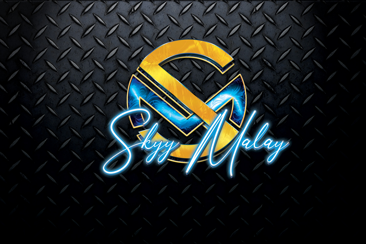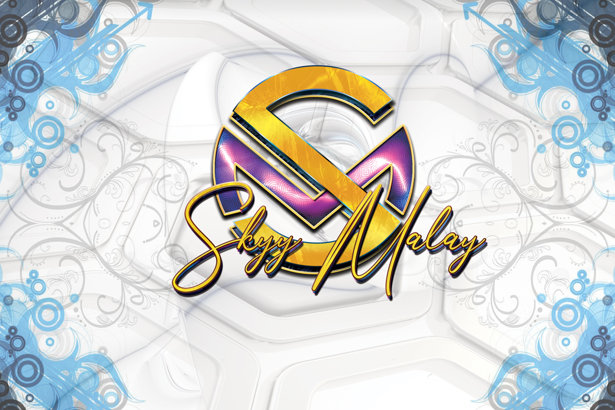 A circle-shaped pendant-style logo for musical artist Skyy Malay, utilizing a modified Republik Sans 01 coupled with Anthoni Signature. The S and the M of Republik Sans 01 both have rounded edges, allowing the overlapped combination of the letters to create a full circle with the two initials. I modified the S to match the angle of the M for a more unified design.
