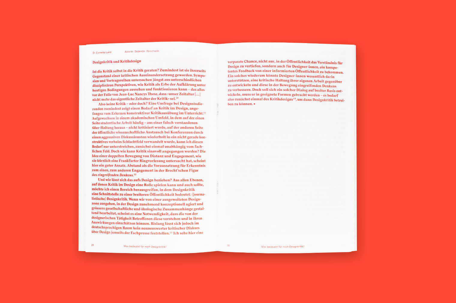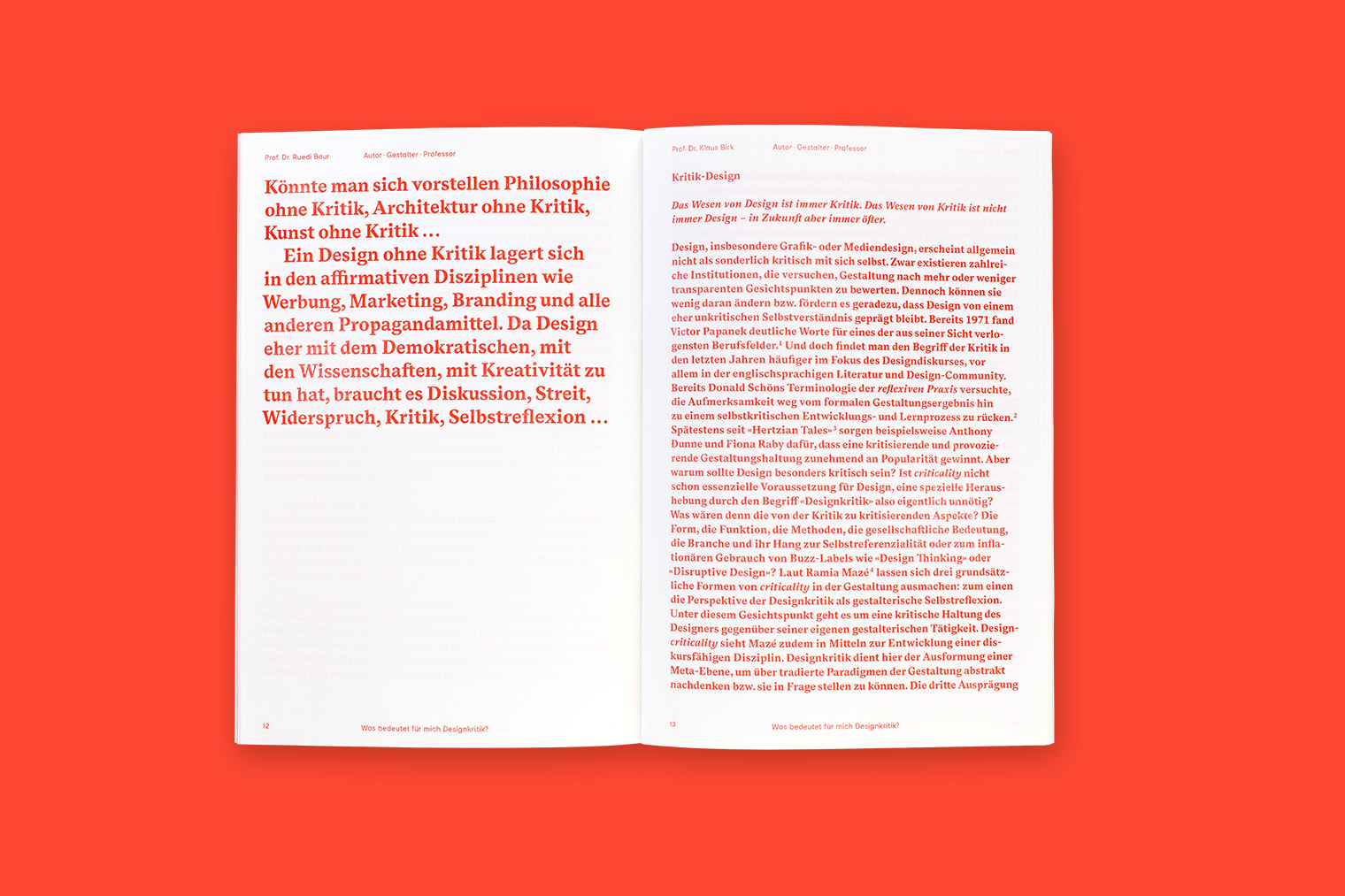 The publication Was bedeutet für mich Designkritik? (“What does design criticism mean to me?”) is dedicated to a subject that is currently given little attention. Neither the public nor the design disipline itself deals with criticism in depth—unlike, for example, visual arts, literature, music, etc. In order to counteract this, people who work in design in various functions were asked the same question: What does design criticism mean to you? Twenty personal answers show how relevant the critical discourse is with and for design.