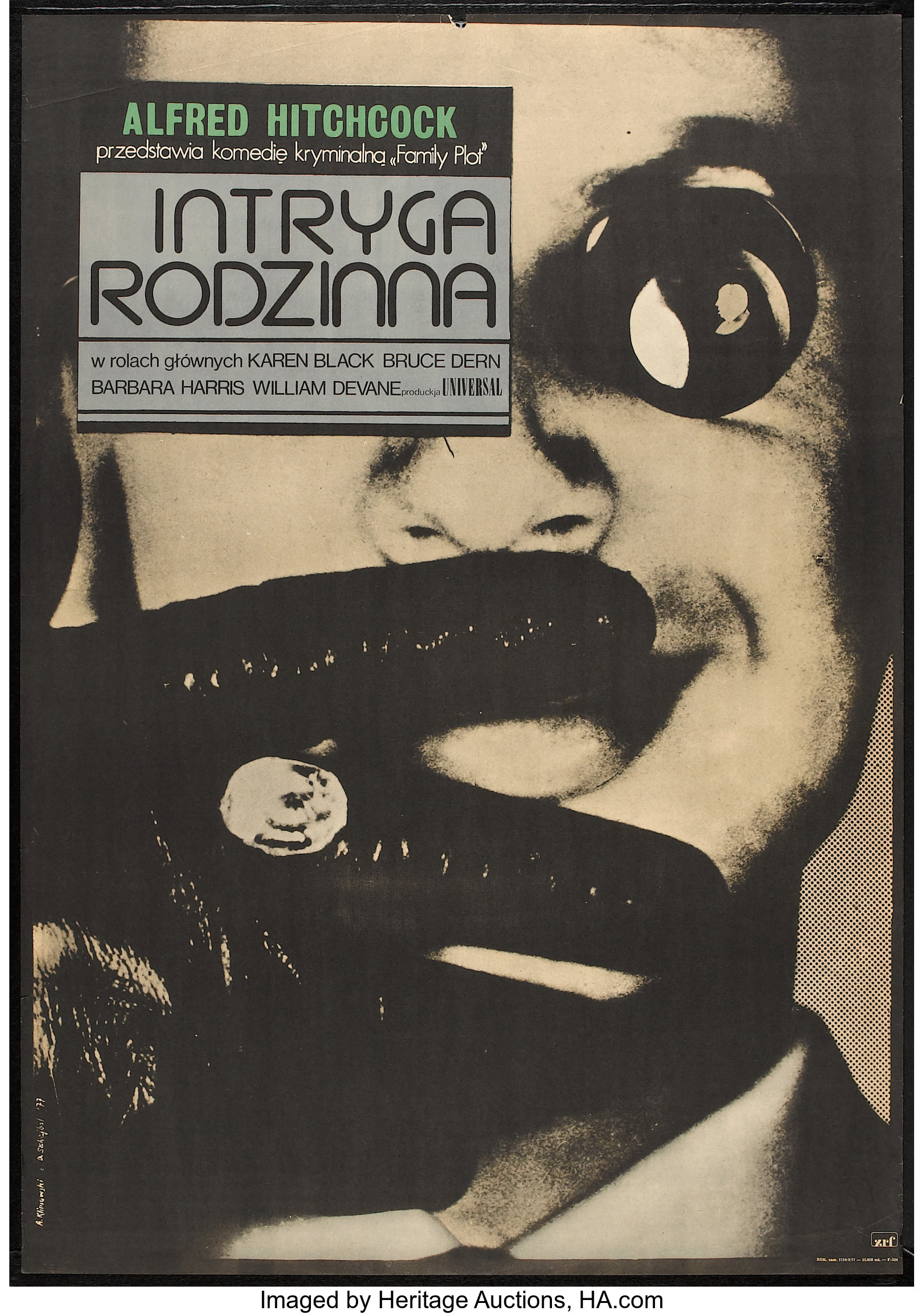 Intryga rodzinna Polish movie poster Contributed by Florian Hardwig on Apr 27th, 2023. Artwork published in 1977. Source: movieposters.ha.com Heritage Auctions. License: All Rights Reserved. Intryga rodzinna is the Polish title of Family Plot (Universal, 1977). The black comedy thriller was the last film directed by Alfred Hitchcock. The Polish One Sheet poster (26.25″×37″) was designed by Danusia Schejbal & Andrzej Klimowski, using Cut-In (Letraset, c.1973) for the title. Typefaces More about Cut-InMore about Grotesque No. 9Get Grotesque No. 9More about FuturaGet FuturaMore about HelveticaGet Helvetica Formats Posters/Flyers (5768) Topics Film/TV (2027) Designers/Agencies Andrzej Klimowski (1) Danusia Schejbal (1) Tagged withmovie posters (692)Alfred Hitchcock (6)Polish (language) (292)type in a box (710)all caps (7608)thriller (96)comedy (207)crime (125)Karen Black (1)Bruce Dern (1)Barbara Harris (1)William Devane (1)Universal Studios (18) Artwork location Poland (444) In SetsLetraset (Florian Hardwig) (520)Old Skool is Kool (Juan Ortega) (64)Posters (Lucas Bevilaqua) (377)Movies (Lucas Bevilaqua) (83)Favourites (Lucas Bevilaqua) (1150)bb (Leonardo de la Fuente) (1331)PHANTA (Leonardo de la Fuente) (285) 1 Comment on “Intryga rodzinna Polish movie poster” Florian Hardwig says: Apr 27th, 2023 3:04 pm See also Karel Vaca’s Noci a dny for another Polish movie poster using Cut-In: Post a comment Name Email – will not be published Website Your response Submit Comment More Cut-In in use The Buggles – “The Plastic Age” / “Island” single cover1980unknownContributed by Garrison Martin Noci a dny Czechoslovak movie poster1976Karel VacaContributed by Florian Hardwig Surinam Airwaysc. 1975unknownContributed by Florian Hardwig Sponsor More in Film/TV Euskal Zine Bilera Film Festival (2019)2019Rubén García-CastroContributed by R-Typography Catalunya Film Festivalsc. 2017FamiliaContributed by Swiss Typefaces Perný den Czechoslovak movie posters1978Pavel JasanskýContributed by Florian Hardwig Hranice stínu movie poster1977Milan GrygarContributed by Florian Hardwig More in Posters/Flyers Oulipo @ 502011Julian MontagueFrazer/Montague DesignContributed by Stephen Coles Staff Pick Zaľúbený blázon (Innamorato pazzo) Czechoslovak movie posters1984Karel VacaContributed by Florian Hardwig Jakob Kudsk Steensen: Berl-Berl – A Live Simulationc. 2024SkalaContributed by Anna-Sophia Pohlmann (kimera) Californication TestLab Berlin2017Sean AdamsContributed by Sean Adams More Fonts In Use Celluloid & Cigarettes movie poster2012Piet SchreudersContributed by Indra Kupferschmid Staff Pick “Ones to Watch” series, It’s Nice That2019It’s Nice ThatAlva SkogContributed by Production Type Staff Pick Biennale Zielona Góra, “Returning to the Future”2020Karolina PietrzykTobias WenigGilbert SchneiderContributed by Benoît Bodhuin Staff Pick Slavutych clock installation2021unknownContributed by Kateryna Korolevtseva Staff Pick