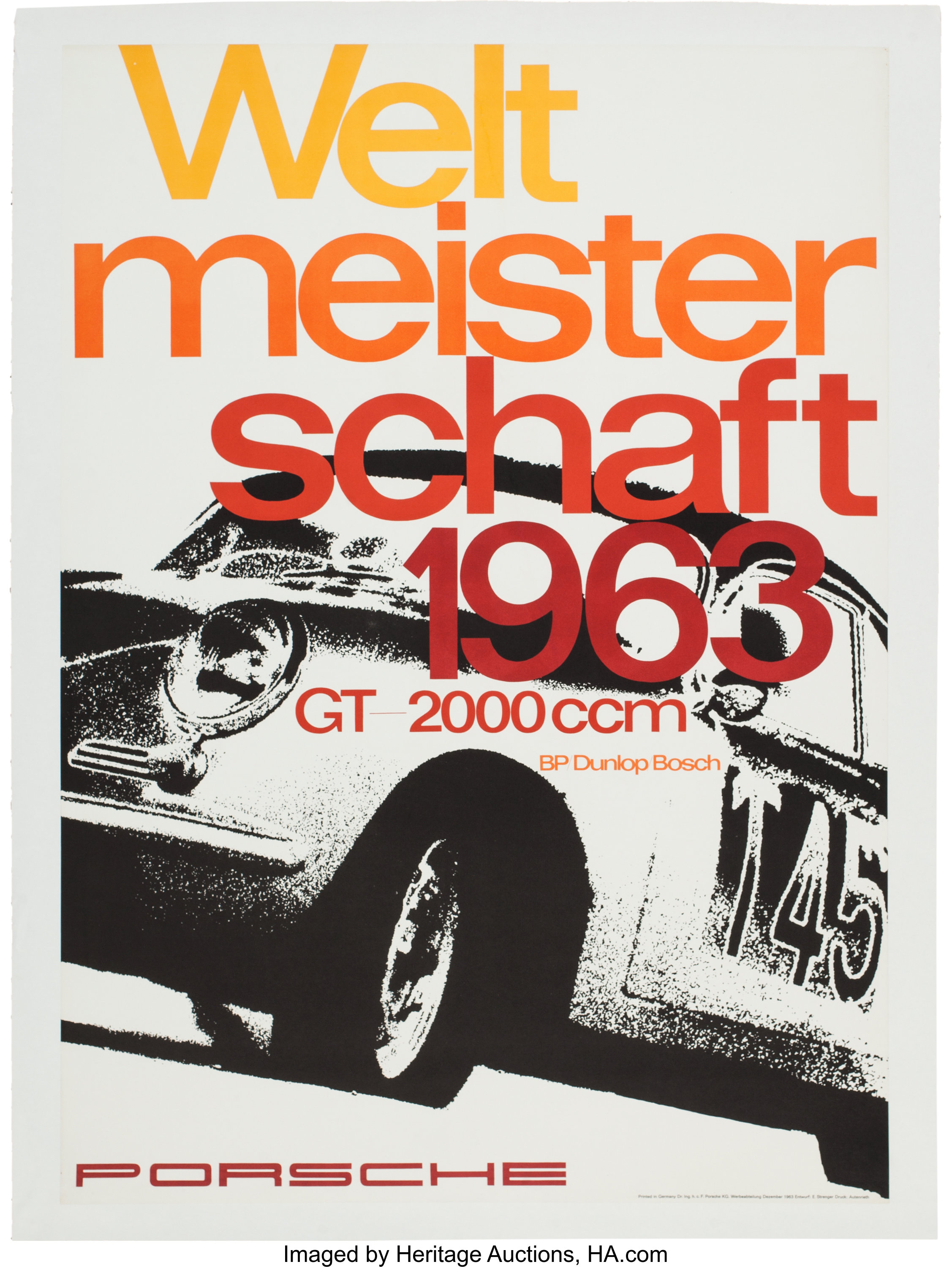 Of the posters published by Porsche in the 1960s, many feature Folio as the main typeface. Folio, or Folio-Grotesk, was designed by Walter Baum and Konrad F. Bauer and released by the Bauer foundry in Frankfurt/Main, starting with the schmalfett (extrabold condensed) in 1956, and ending with the breit leicht (wide light) in 1969.