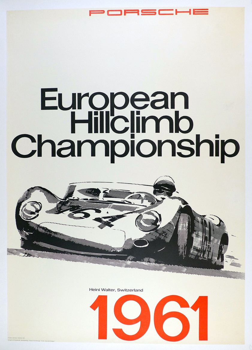 European Hillclimb Championship 1961. Design by Strenger, showing a Porsche RS-61 driven by Heini Walter (Dec. 1961).