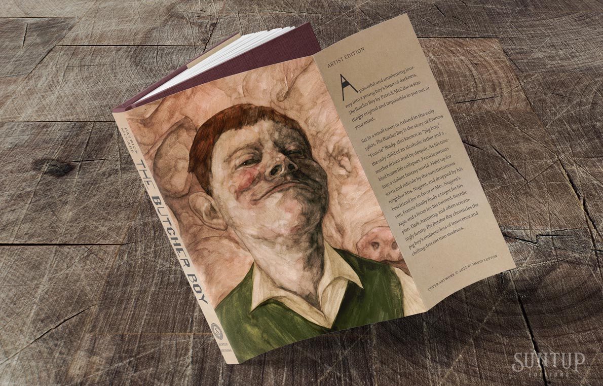 Suntup Editions has announced a new edition of The Butcher Boy by Patrick McCabe, designed by Michael Russem and illustrated by David Lupton. The book is described as “a powerful and unrelenting journey into a young boy’s heart of darkness” featuring a protagonist the New York Times called “part Huck Finn, part Holden Caulfield, part Hannibal Lecter.”