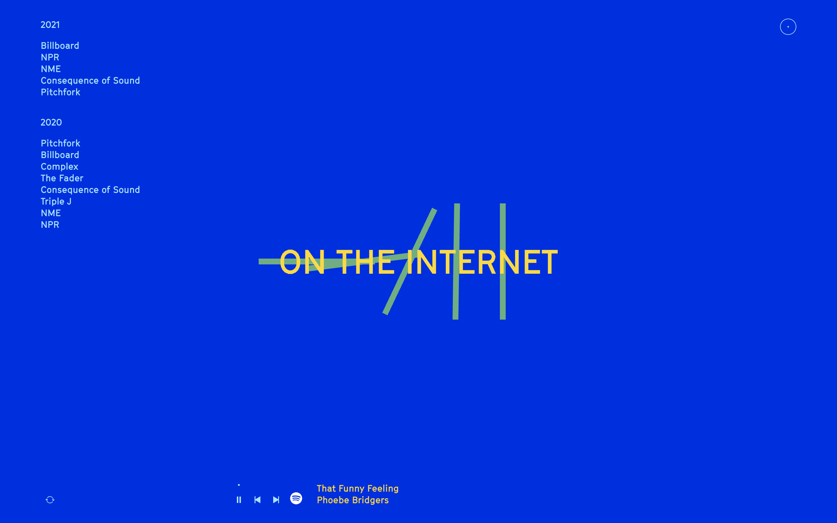 Last Years Singles is a site which aggregates the year end lists of music by huge publications, into an interactive space to listen and discover the music that hit a nerve in the year. The site largely sits on a flat structure, utilising GT Cinetype to bring this unnerving balance between being clean and chaotic.