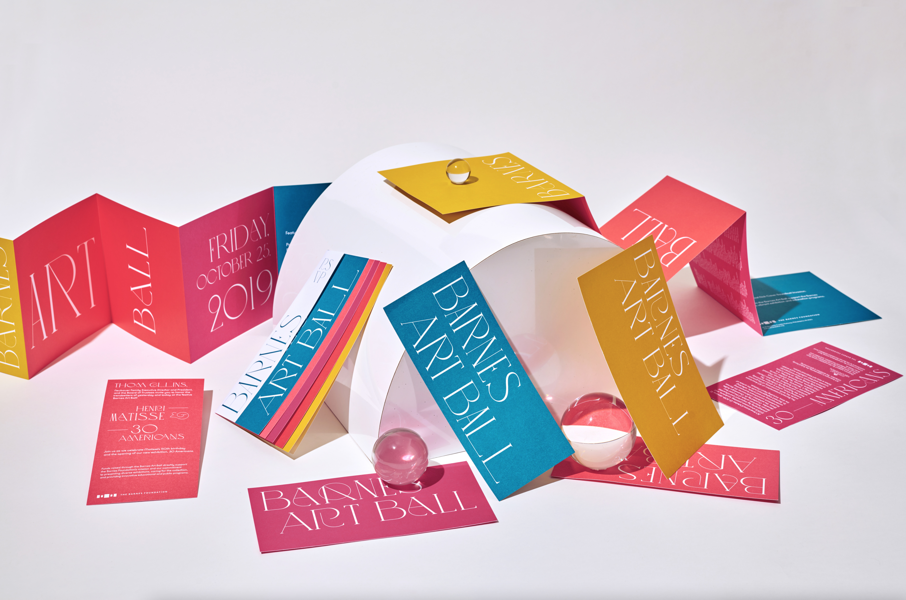 Love and Kobe by VJ-Type in use on an invitation, designed by Pauline Nyren for Barnes Art Ball, a large donor event at the Barnes Foundation. The 2019 Art Ball was themed around Matisse’s 150th birthday and the opening of the exhibition 30 Americans.
