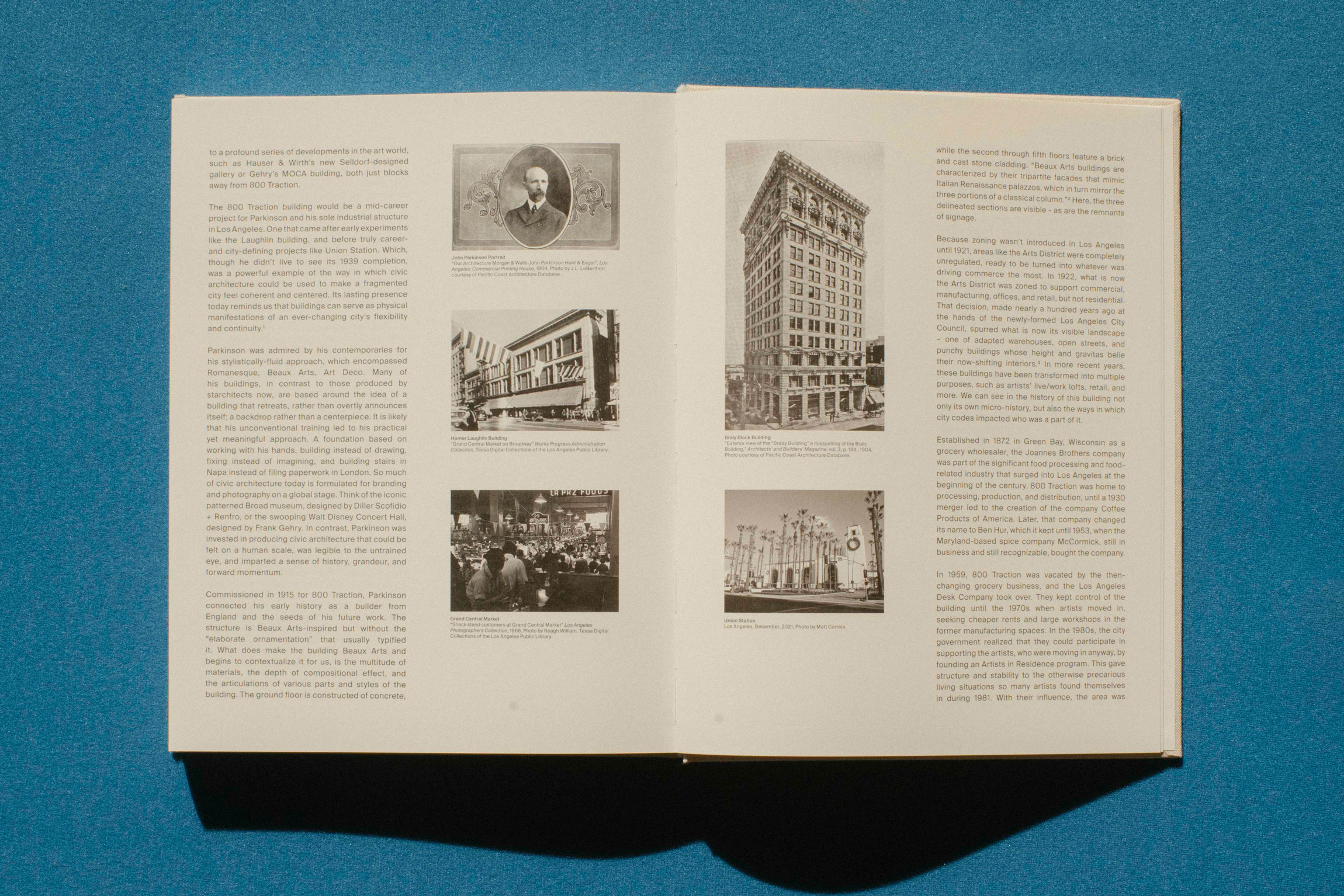 800 Traction Avenue is a building designed by architect John Parkinson in 1939 located in the Arts District of Downtown Los Angeles. This book serves as a historical artifact and time stamp that concretes the remnants of John Parkinson’s contribution to the city of Los Angeles. From the prologue by John Zabawa: