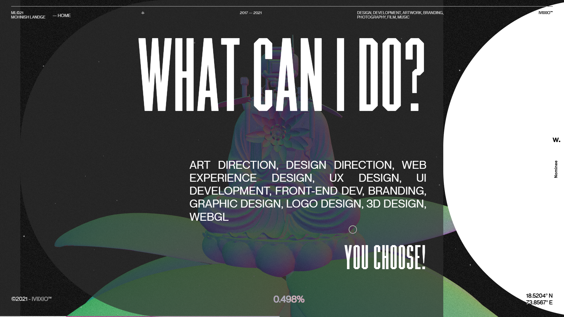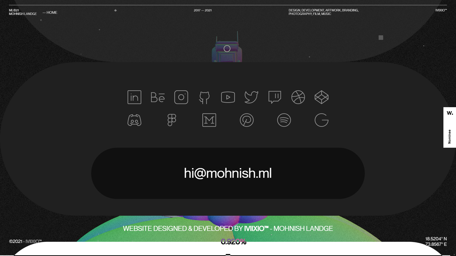 ML©21 Mohnish Landge portfolio website Contributed by Mohnish Landge on Dec 31st, 2021. Artwork published in 2021. Source: mohnish.ml License: All Rights Reserved. ML©21 is the title of my current portfolio website. It uses Commune Nuit Debout as display font and Neue Montreal as descriptive font. While experimenting during the design process these two stood out as a good pairing. The boldness of Commune and the formalness of Neue Montreal makes the design really unique. Source: mohnish.ml License: All Rights Reserved. Source: mohnish.ml License: All Rights Reserved. Source: mohnish.ml License: All Rights Reserved. Source: mohnish.ml License: All Rights Reserved. Typefaces More about Commune Nuit DeboutGet Commune Nuit DeboutMore about Neue MontrealGet Neue Montreal Formats Web (5721) Topics Graphic Design (3046) Designers/Agencies Mohnish Landge (2) IVIIXIO (2) Tagged withportfolios (781)websites (3660)personal websites (264)design studios/agencies (501) Artwork location India (96) In SetsColossal Combinations (Jay W. Mellor (JWM)) (2128) Post a comment Name Email – will not be published Website Your response Submit Comment More Commune Nuit Debout in use Build Communities Not Cages2020Autonomous Design GroupContributed by Autonomous Design Group Housing rights poster seriesc. 2020Autonomous Design GroupContributed by Autonomous Design Group “Here we are now”, KABK2018Mariam DarchiashviliContributed by Mariam Darchiashvili Sponsor More in Graphic Design Cassandra Tang portfolio website2020Cassandra TangContributed by Cassandra Tang The Penrose Annual, Vol. 41, title page1939Francis MeynellPhoto(s) by mikeyashworth on Flickr. Staff Pick The Art of Metal2013Grade DesignPaul Palmer-EdwardsContributed by Bonez Designz Sign Week Vienna 2017 websitec. 2017Tom KochContributed by Benedikt Bramböck More in Web SYM Group websitec. 2025Judy Ann MedinaContributed by Aliv Pandu sia.codes2020Sia KaramalegosContributed by Stephen Nixon Correlate website2022unknownContributed by Jan Maack Buyk delivery service brand identityc. 2021unknownContributed by Alex Slobzheninov More Fonts In Use Festival of Britain1951London Press ExchangeEric FraserAbram GamesContributed by Stephen Coles Staff Pick Route to Christmasc. 2025Lars SchrodbergerContributed by HAL Typefaces Staff Pick items Magazinec. 2004Studio DumbarContributed by Shiva Nallaperumal Staff Pick L’artiste et le vivant by Valérie Belmokhtar2022Philippe BrulinContributed by VJ-Type Staff Pick